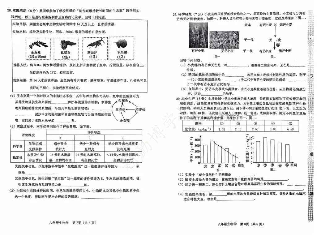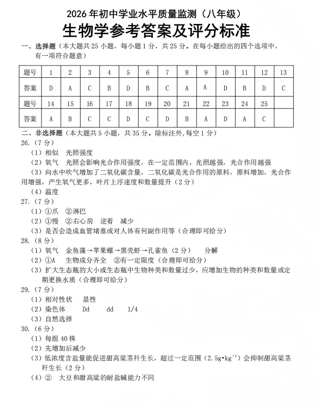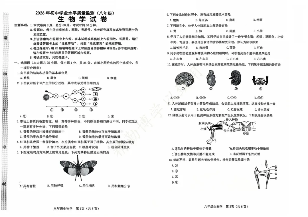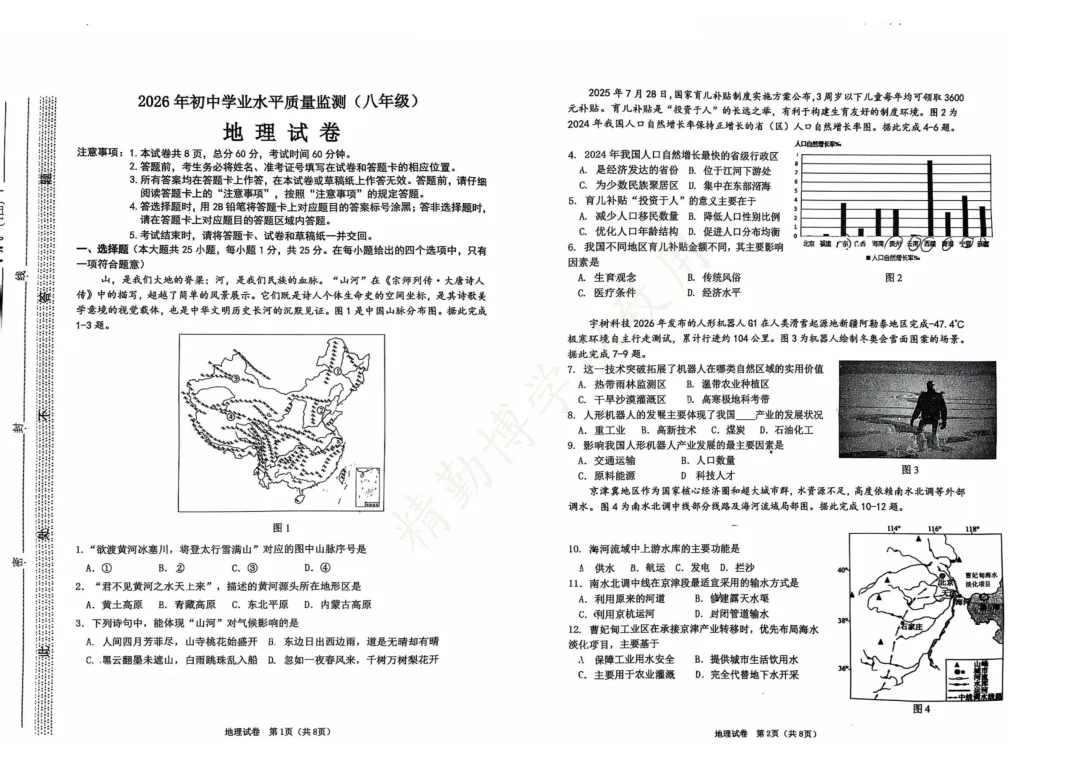 2026.3石家庄市桥西区八年级地生中考模拟试卷(含答案)