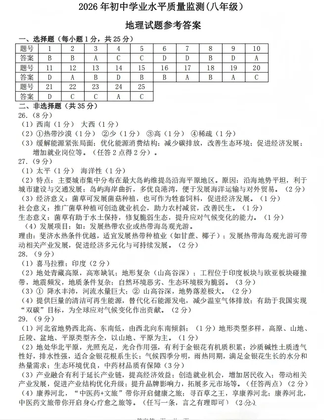 >2026.3石家庄市桥西区八年级地生中考模拟试卷(含答案)