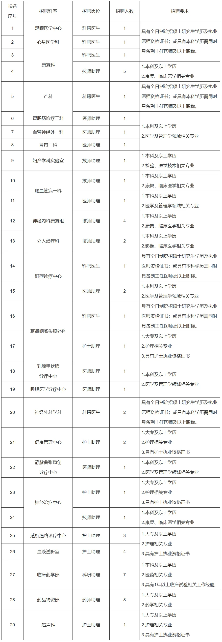 医疗工作人员招聘公告