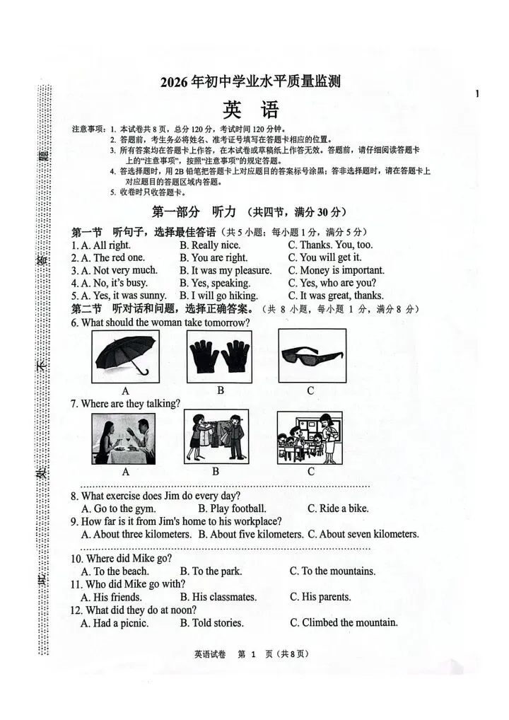 2026版中考英语《提分小卷》(含答案后附下载链接)