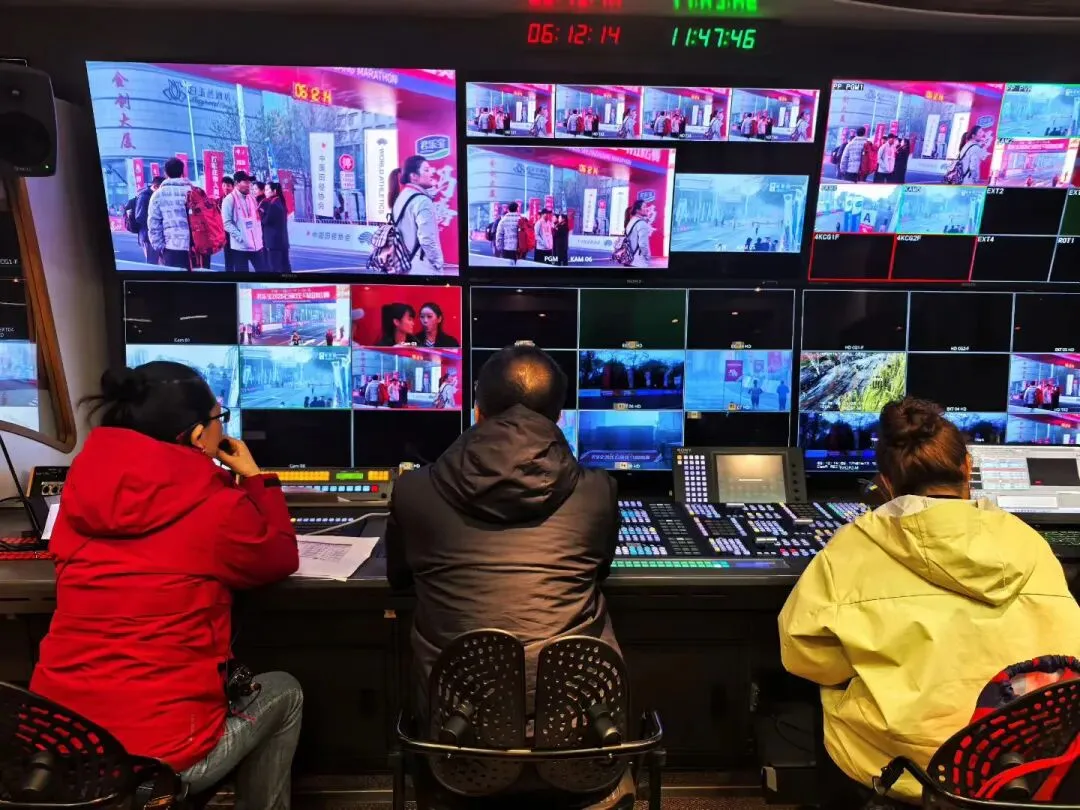 男子分段计时点用时,并且这个用时的呈现是即时的,背后有成绩处理系统作支撑,并非计时记分供应商通过传统的表格进行信息同步。即使在介绍城市景观的同时,转播画面依旧提供比赛画面运动员分段计时点的用时、配速、分段排名,这些数据的实时呈现,取决于T&S(计时记分)的数据准确性,原始数据的准确性如果无法保证,那这些都是空谈。冲线画面,字幕时间、拱门计时钟时间同步且全部呈现。整场赛事,大家印象最深的一定是王超解说,本次石家庄马拉松共有三名解说嘉宾,王超作为竞赛侧的专业解说,对于运动员背景非常了解,做了很多功课,比赛解说节奏控制的也很好,作为台前,提升了观众的观赛体验。幕后,据了解,本次赛事提供了成绩发布系统,提供给解说以及转播等下游客户群,这也能过保证坐在演播室的王超可以第一时间获取到运动员的成绩、排名、配速、预计完赛成绩等信息。另外,本次赛事在现场搭建了PSCB实时成绩大屏,现场的观众和跑者可以第一时间了解到选手的完赛成绩。