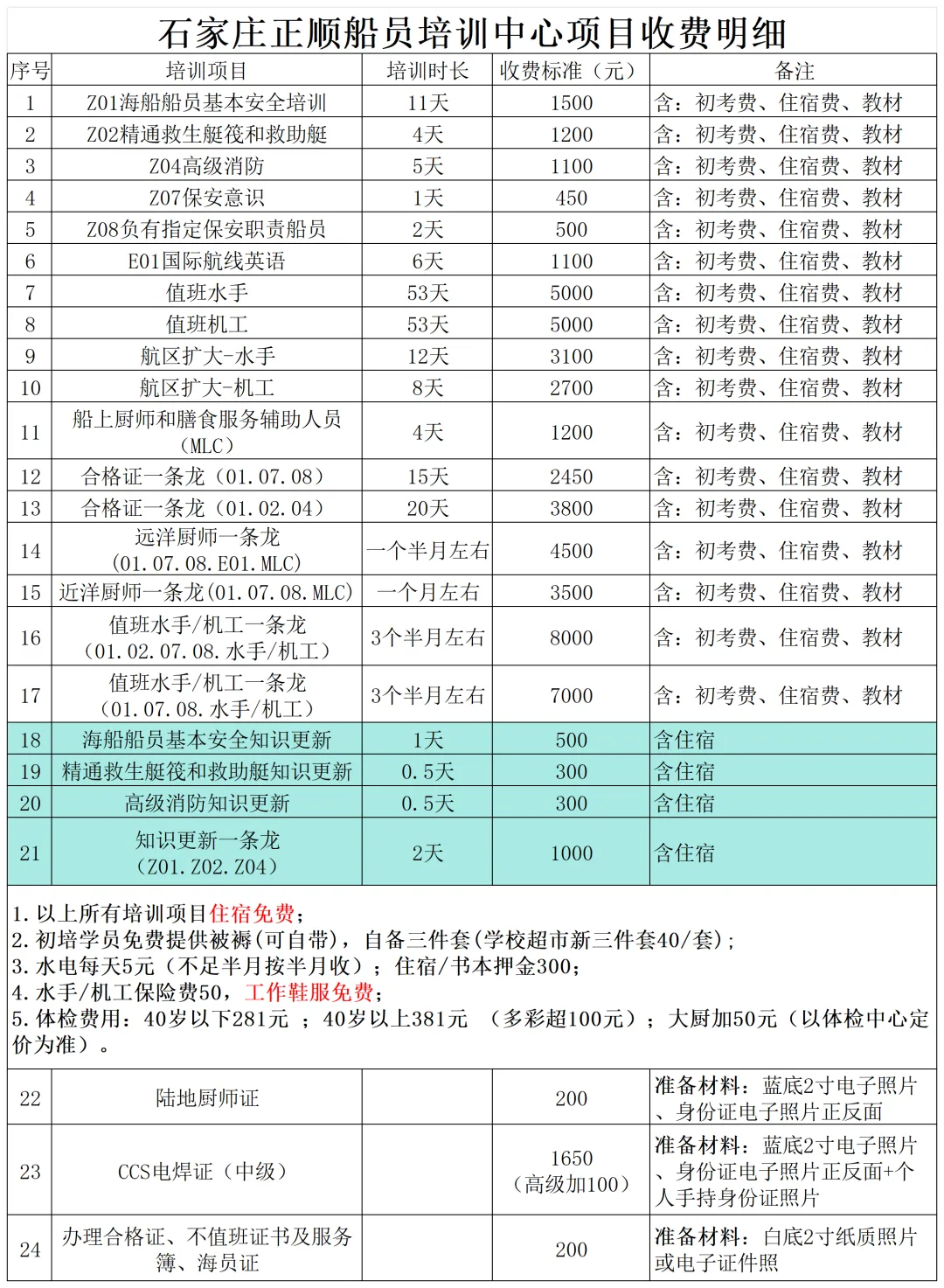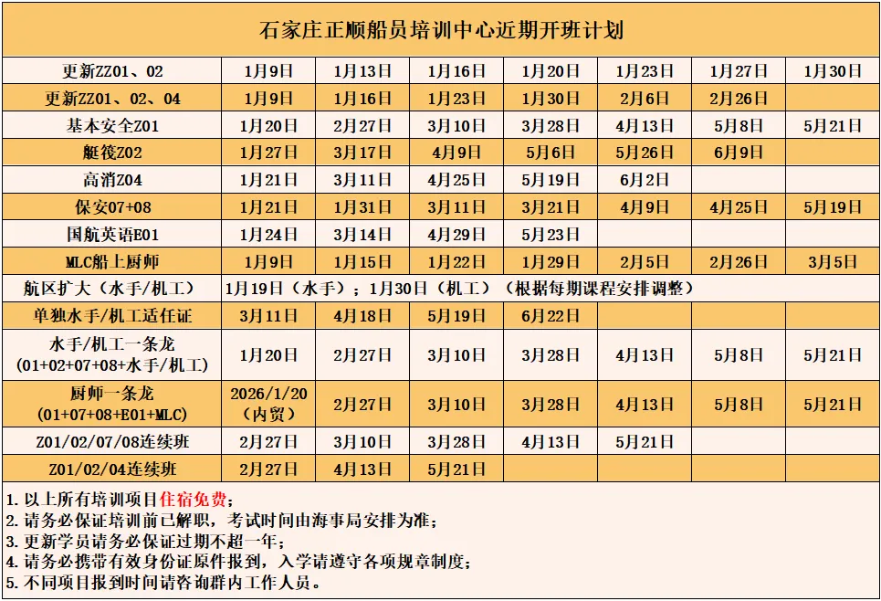 (需持有服务簿,有官网可查的陆地厨师证,并通过了船上厨师体检,可培训船上厨师)
