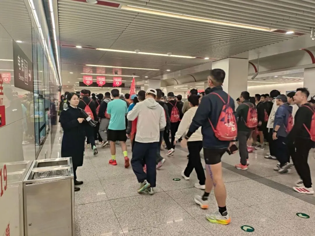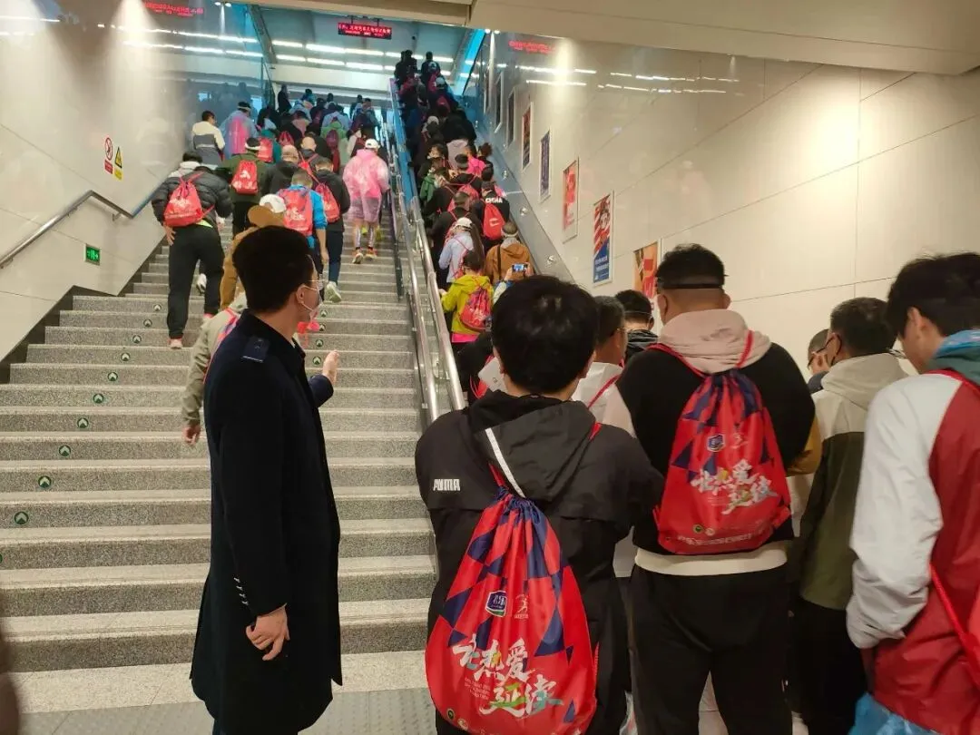 赛事期间,参赛选手凭参赛号码布、工作人员凭工作证件,通过专用通道免费不限次乘坐地铁,高效进站侯乘。沿线重点车站根据实时客流动态增开安检、闸机通道,车站保障人员全程引导客流。车站内准备好医药箱,用细致入微的服务,让出行更有温度。
