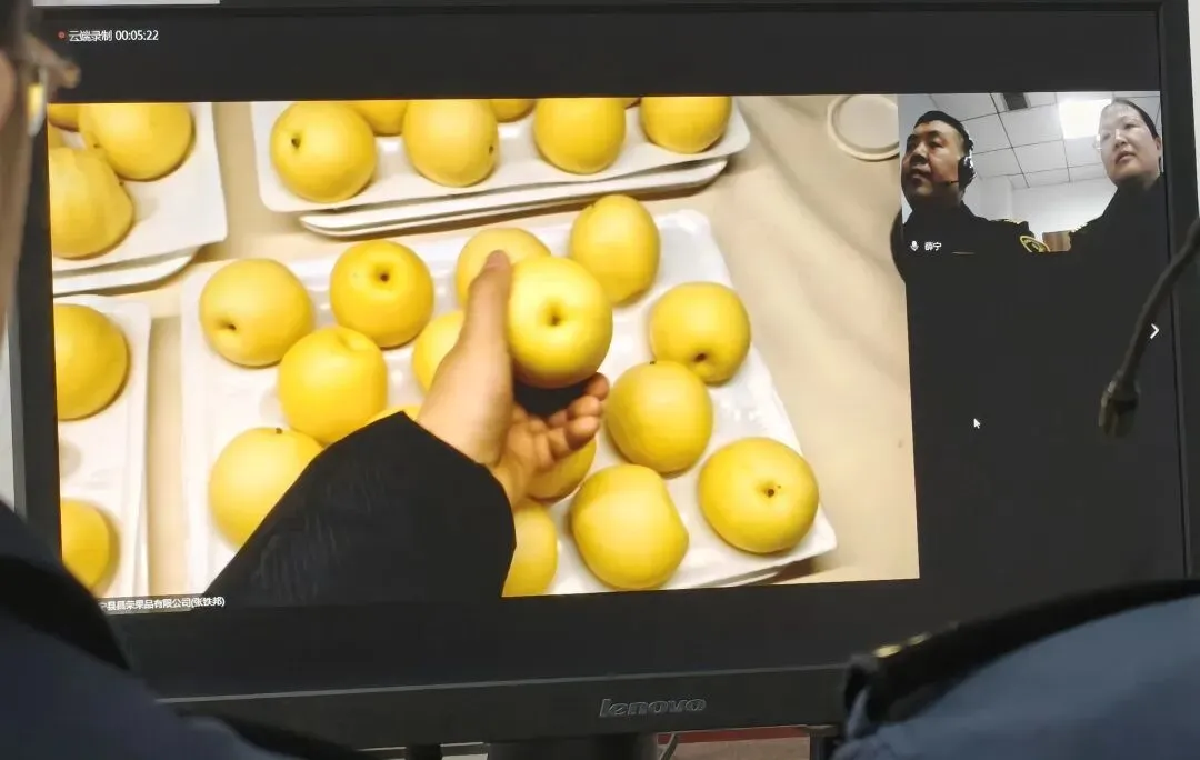 鲜梨是沧州特色产业,产品远销全球50多个国家和地区,辖区内泊头、河间、肃宁等主产区部分企业距海关较远。针对产地分散、查检半径较长的实际情况,沧州海关积极推行远程属地查检新模式。传统模式下,关员需驱车前往,从预约到查检完成通常需要半天,如今单票货物查检时长由4小时压缩至20分钟,在严守安全底线、执法标准不降的前提下,通关效率大幅提升。
