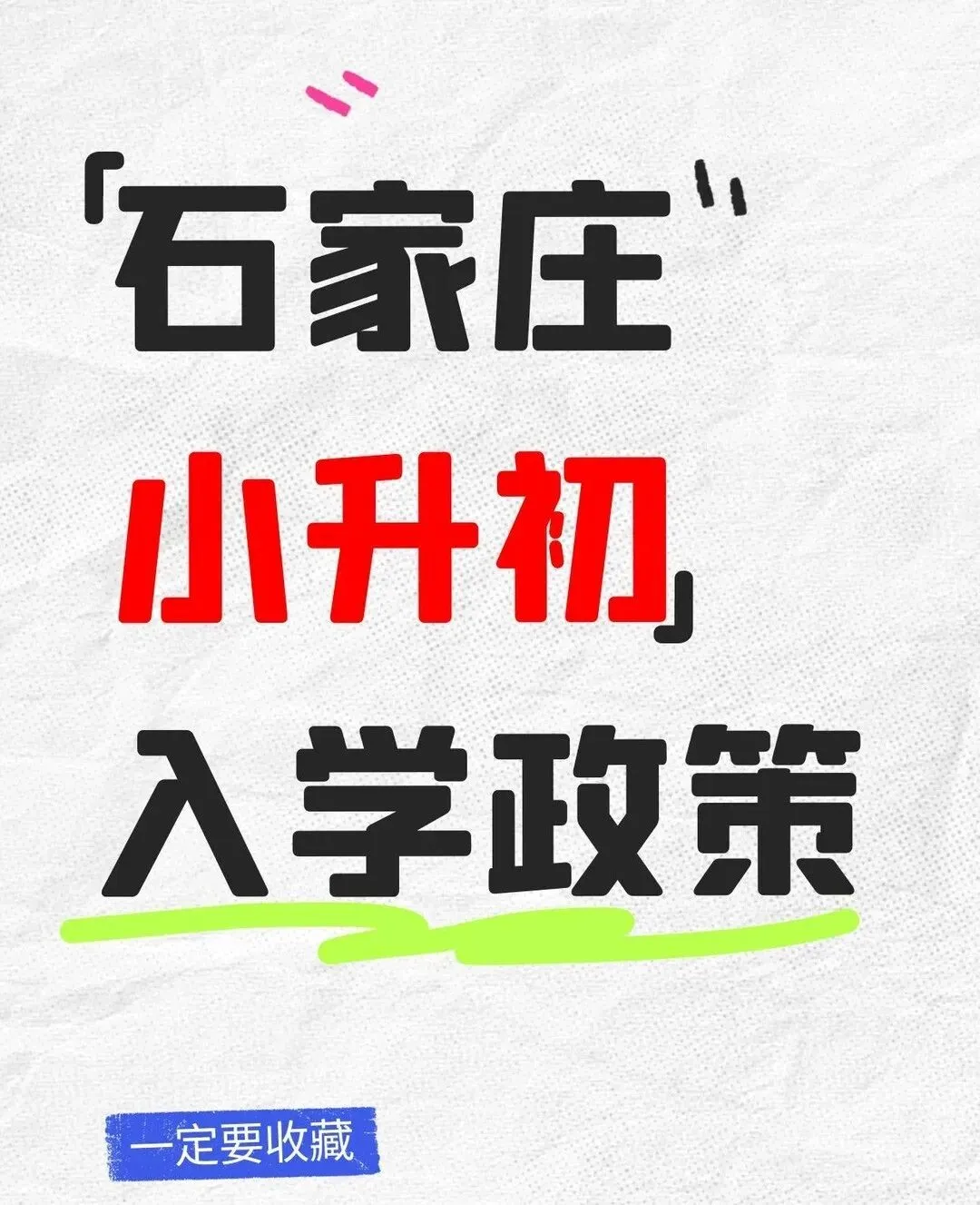 最近有谣言说“中考取消五五分流,小升初更轻松了”,这是完全错误的。中考是中考,小升初是小升初。石家庄小升初的核心原则依然是:免试就近入学 + 公民同招。