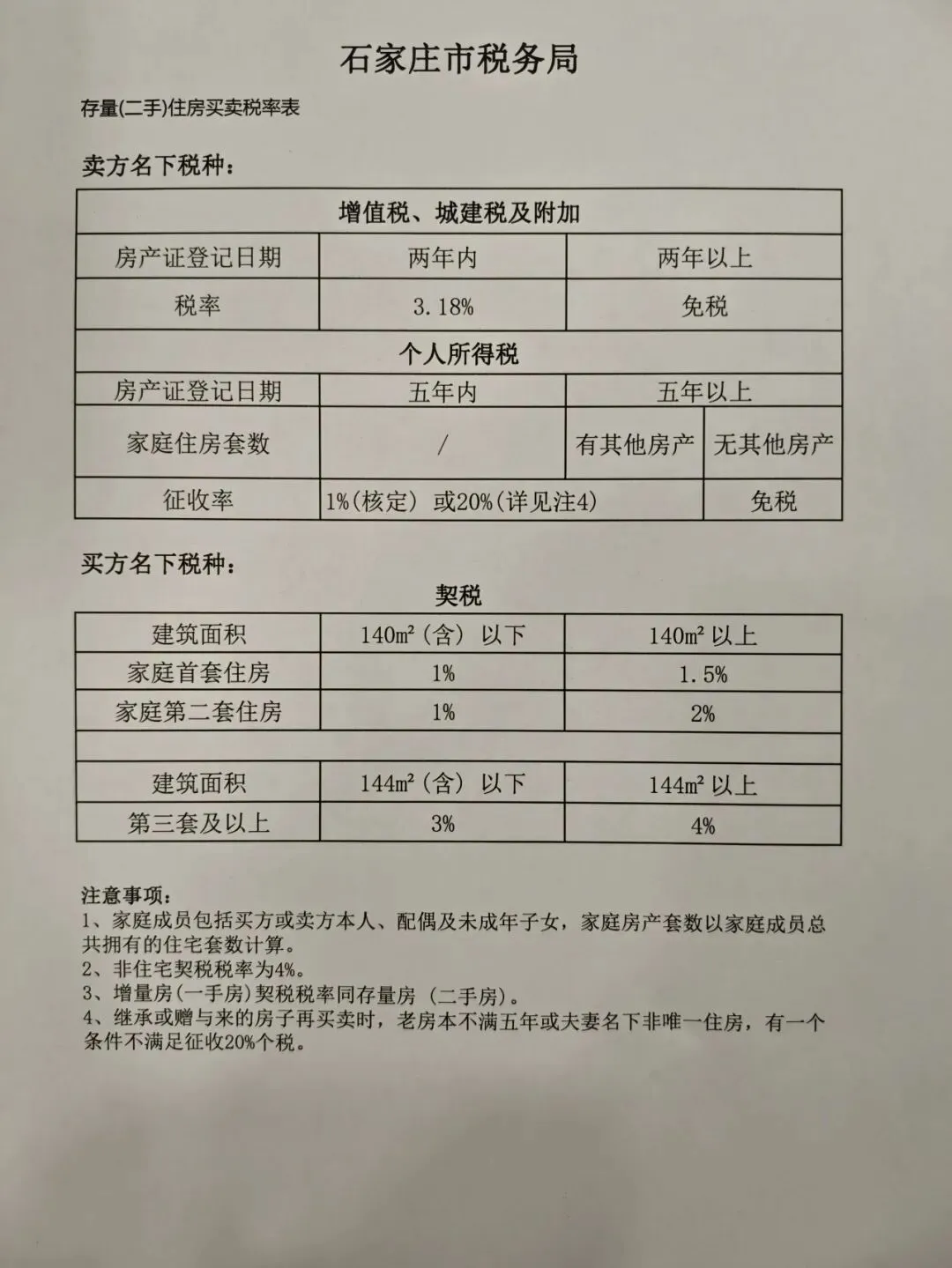 石家庄要买、卖房子的朋友看过来,一张图看懂房屋买卖税费表,不管以后买房还是卖房,收藏必定有用!