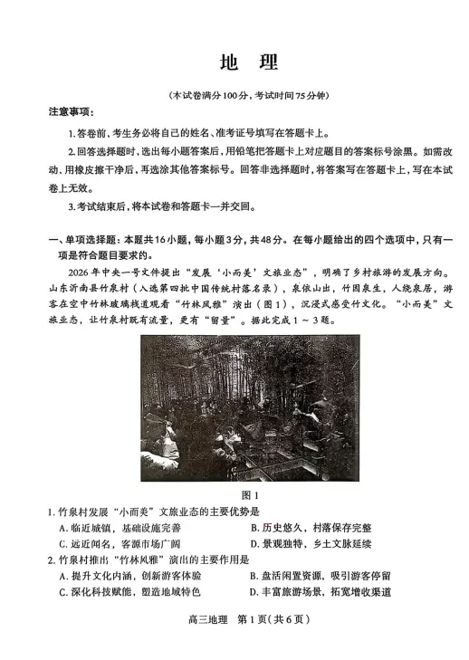 河北省石家庄市2026高三一模地理试题及答案