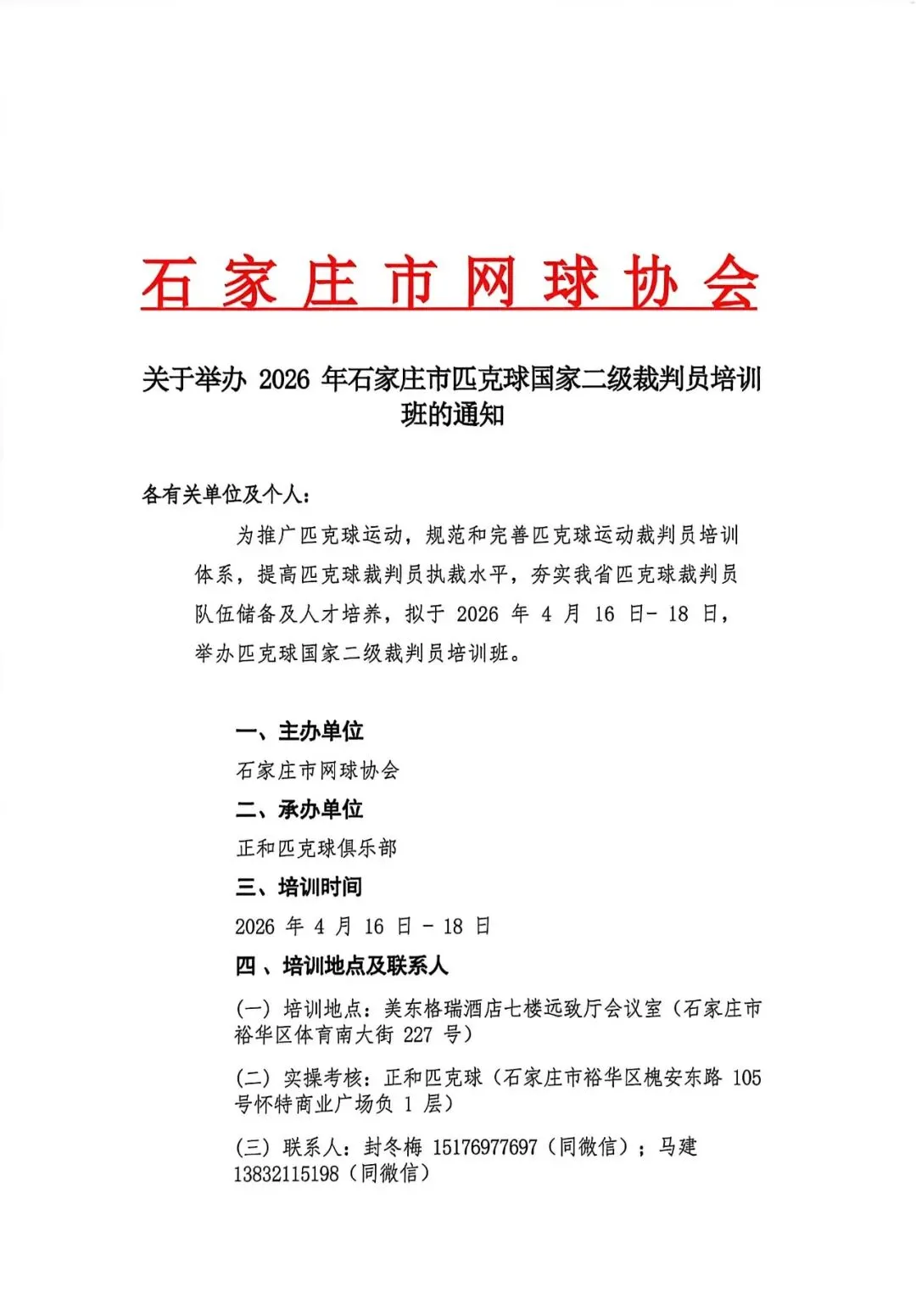 石家庄市匹克球国家二级裁判员培训班要开课了!