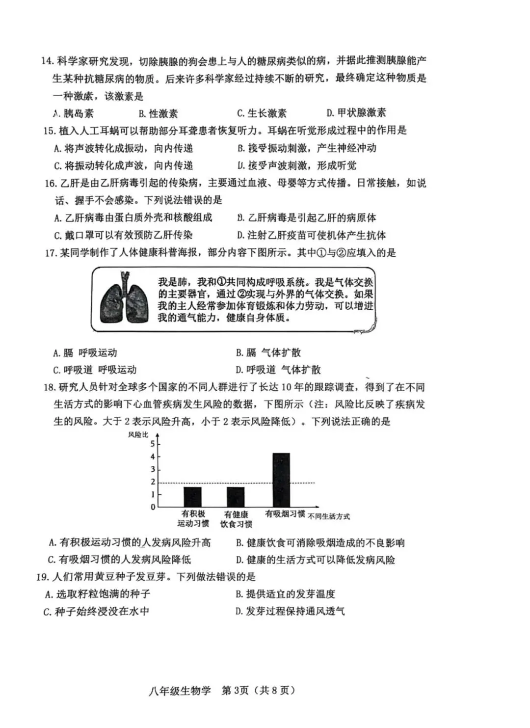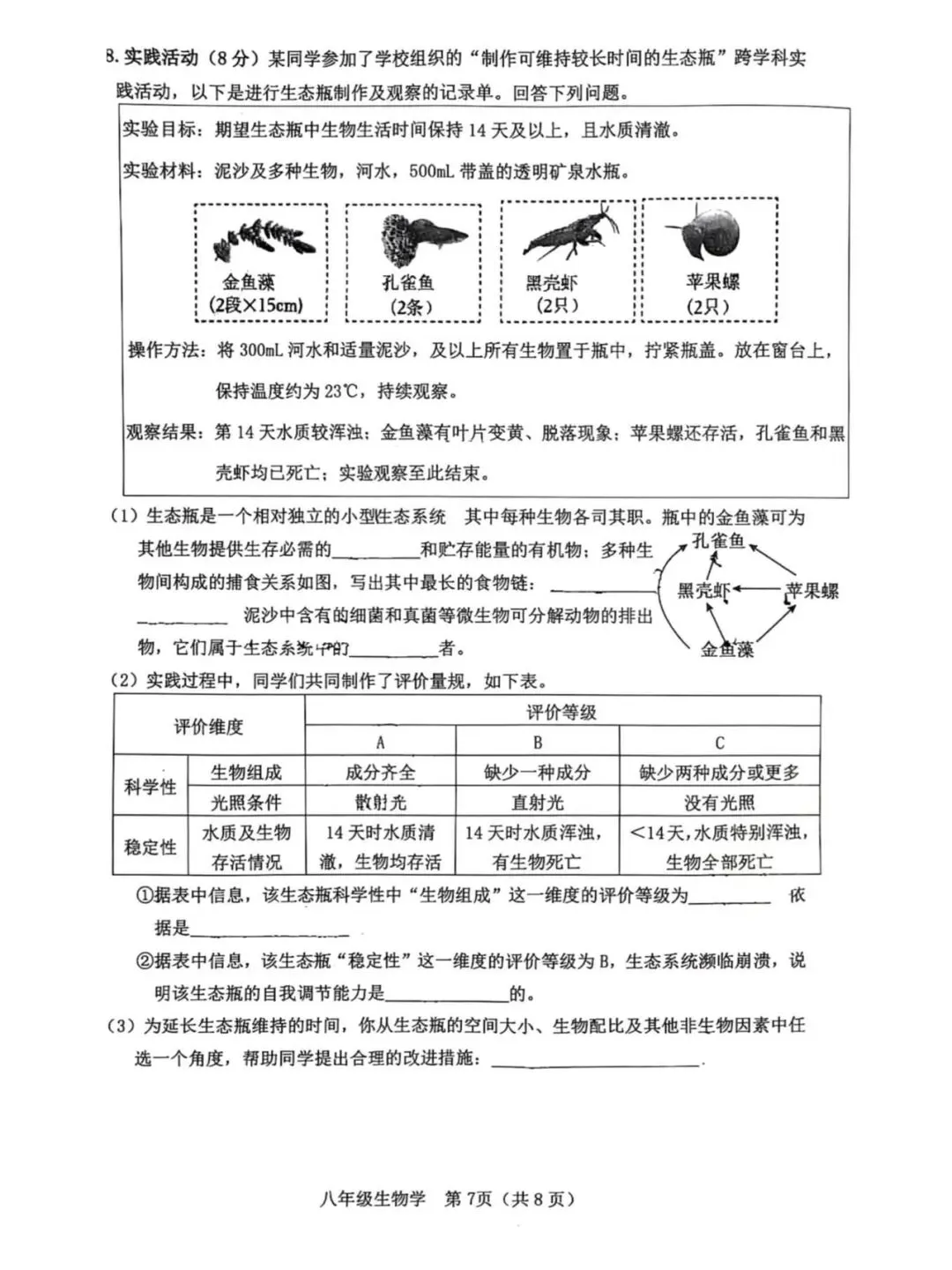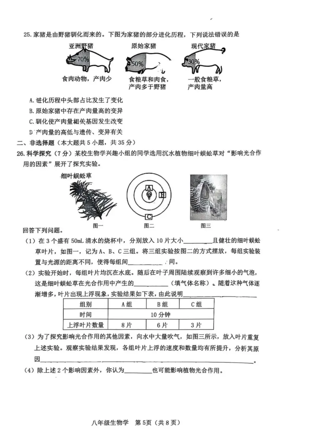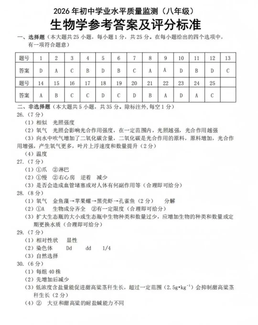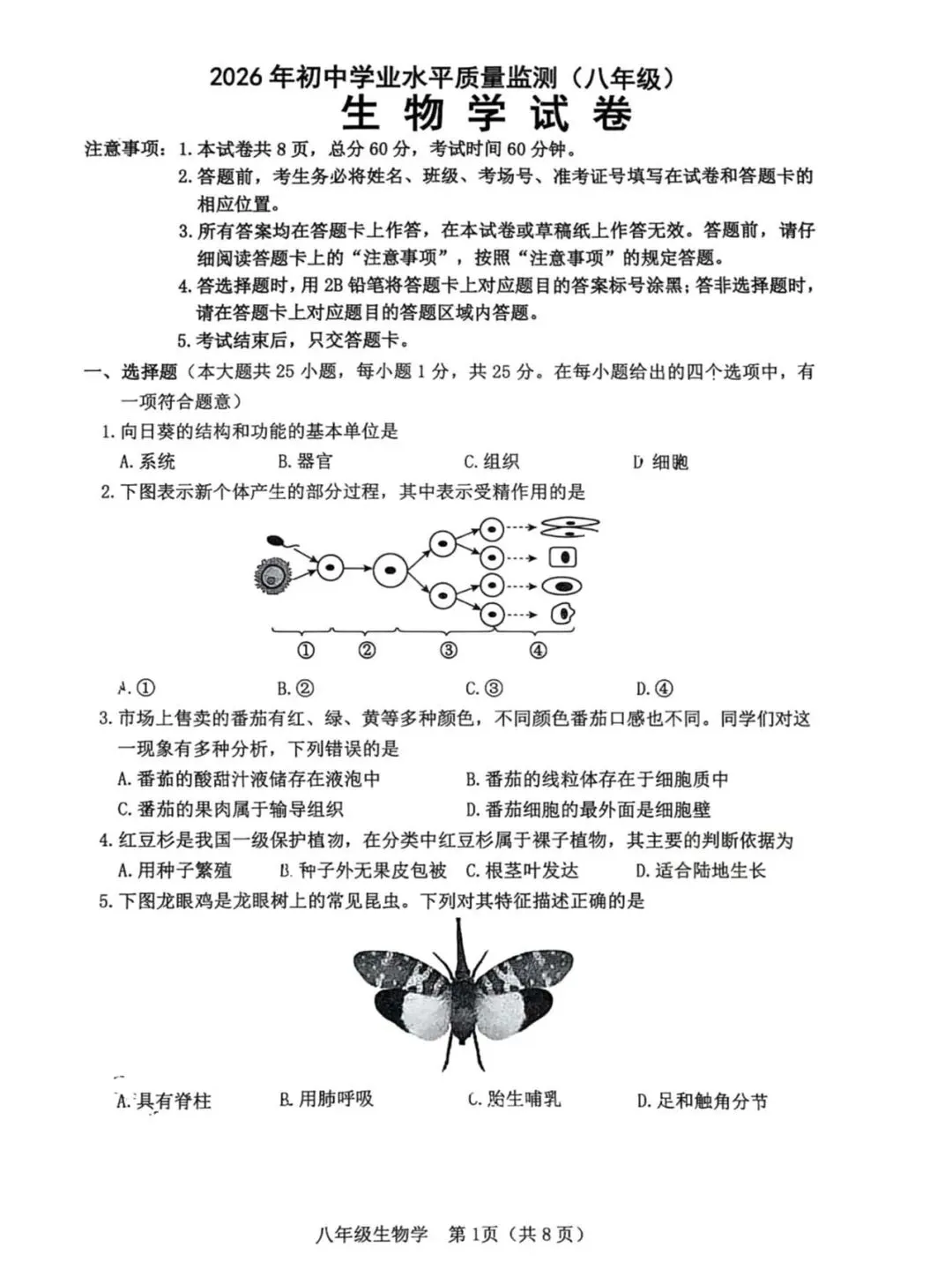 地生学考|2026年3月石家庄桥西区初中学业水平质量监测八年级生物(含答案)
