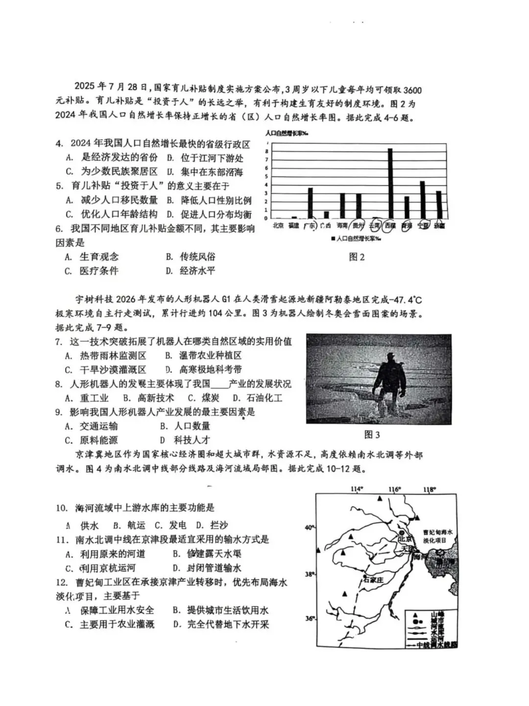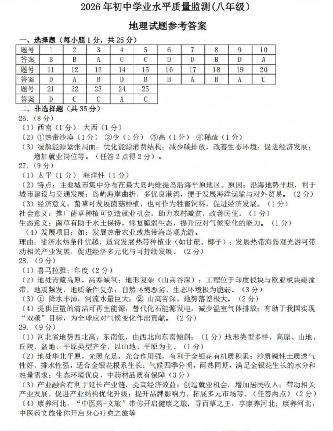 >2026年3月石家庄市桥西区一模八年级生物地理试卷(含答案)