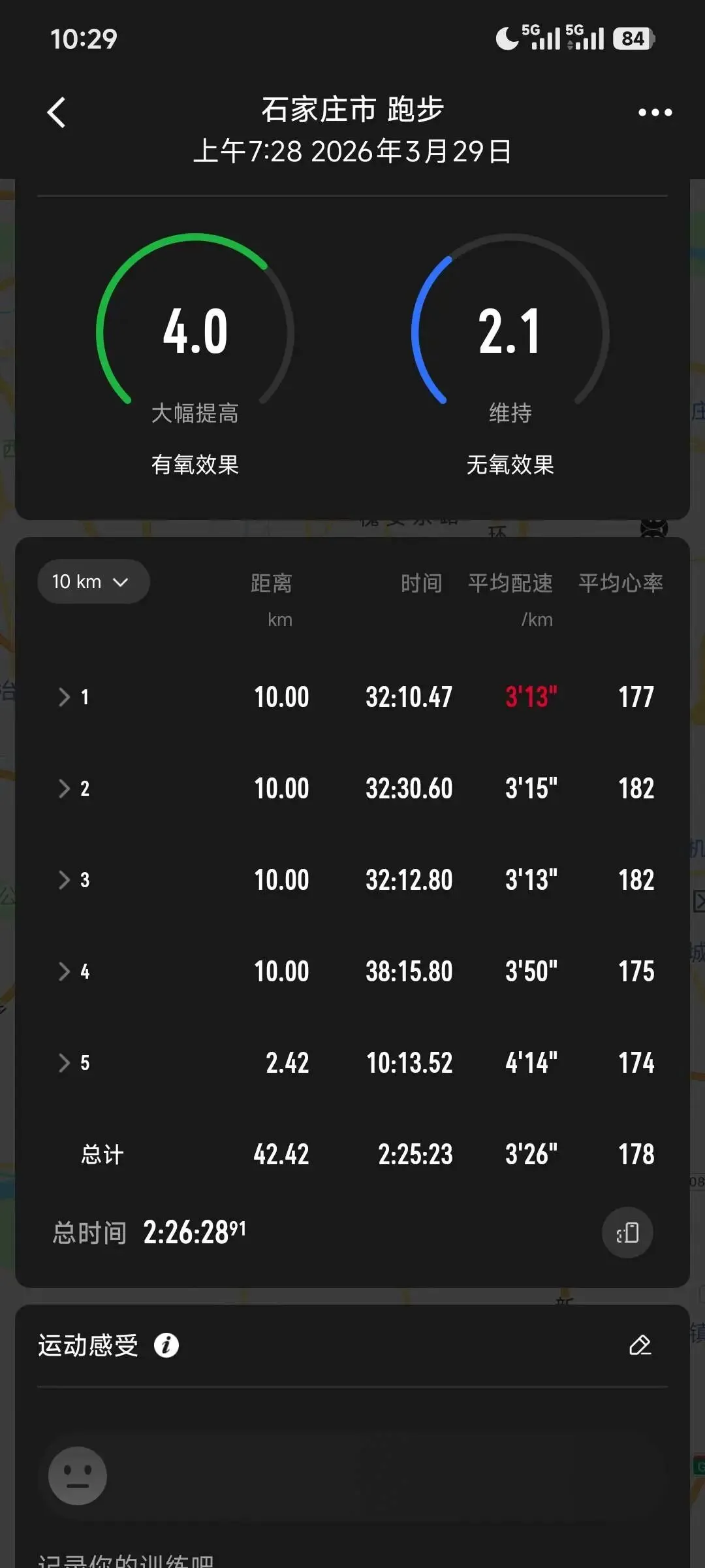 3.27 周五 慢跑10km,配速424,+200米冲刺×3