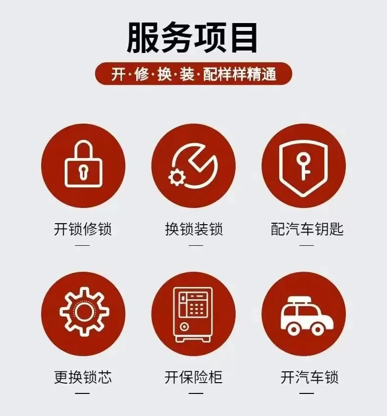 🔹上门开锁(防盗门/室内门/车锁)🔹更换锁芯(A级/B级/C级锁芯升级)🔐🔹指纹锁安装与维修🔹汽车开锁、配钥匙 🚗🔹保险柜开锁 💼🔹门锁维修、故障处理🔹智能锁安装调试与升级📞24小时服务热线:400-8088-269
