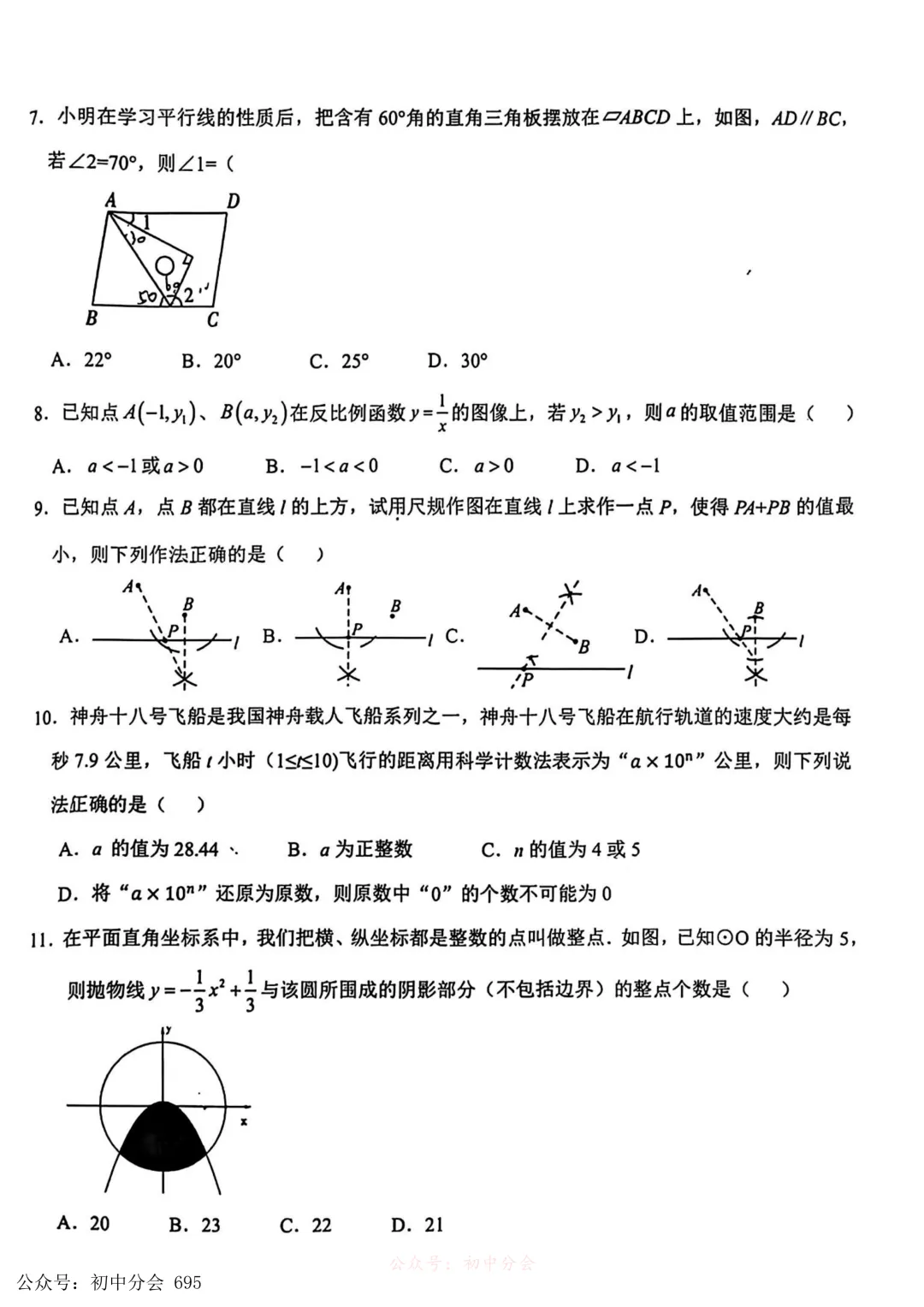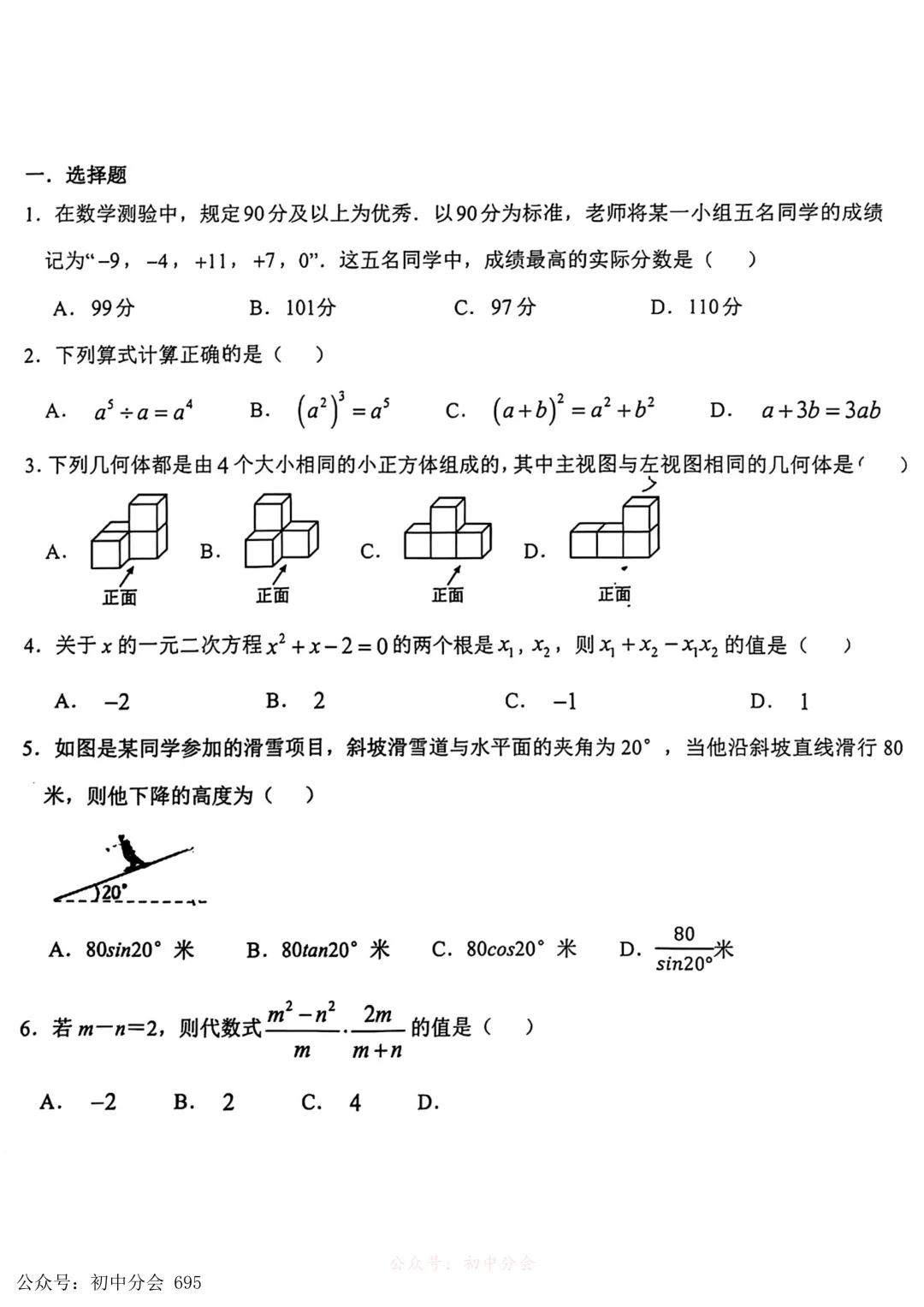 2026.3邯郸市育华中学中考一模试卷及答案