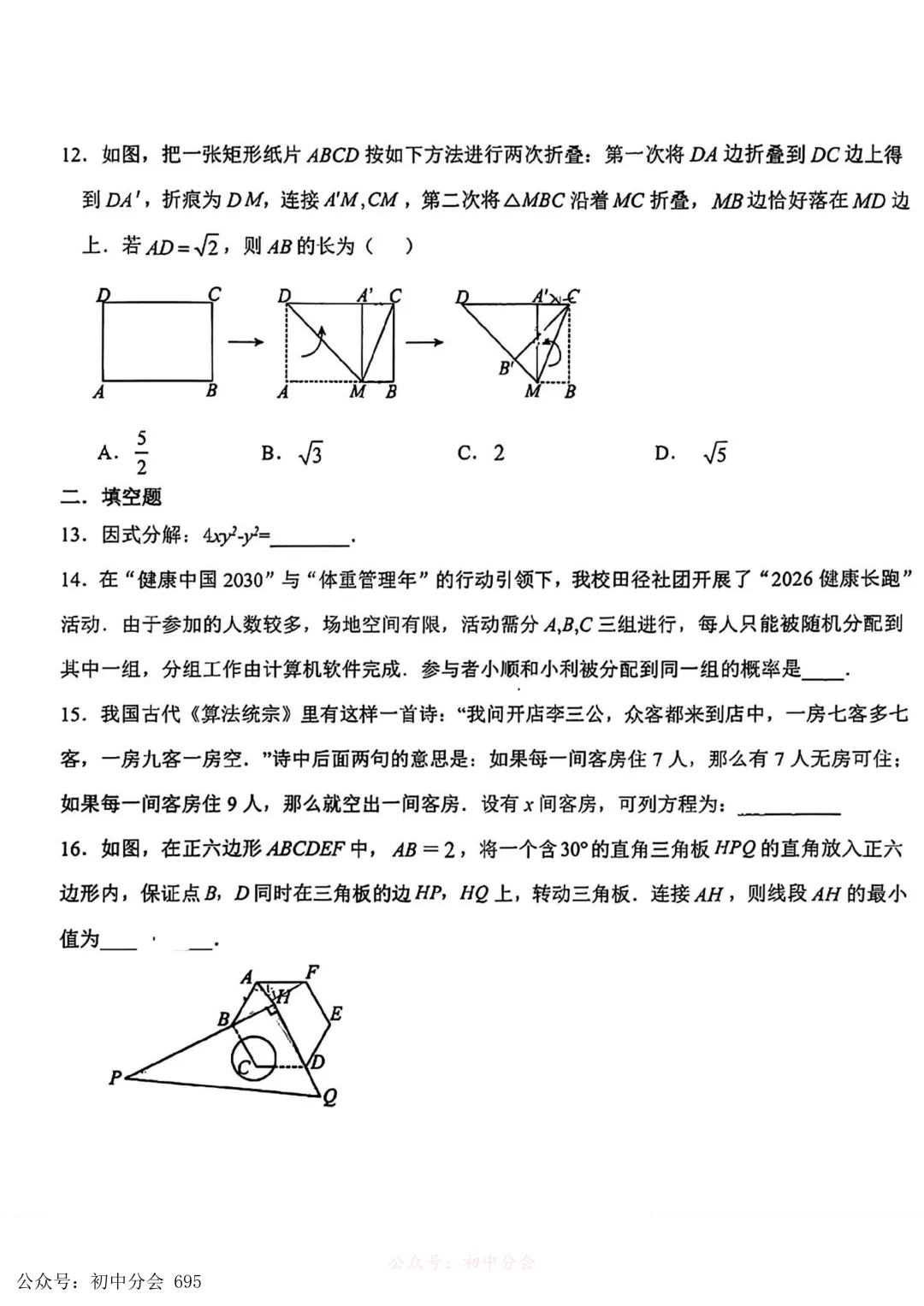 2026.3石家庄市裕华区中考一模试卷及答案(全科含听力)