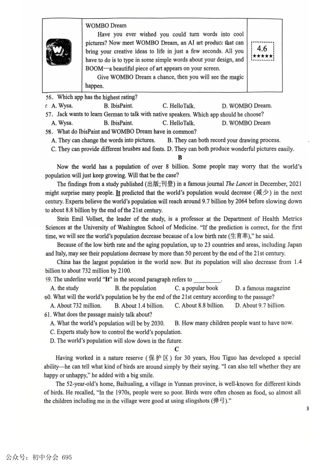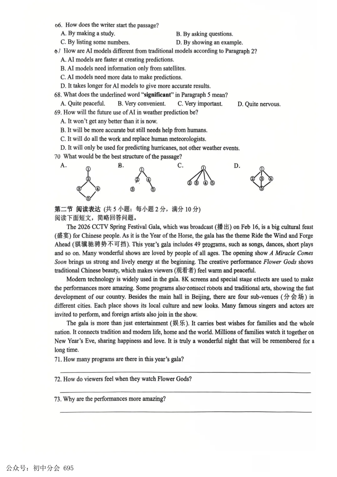 2026年初中学业水平测试模拟演练一试卷及答案(全科含听力)