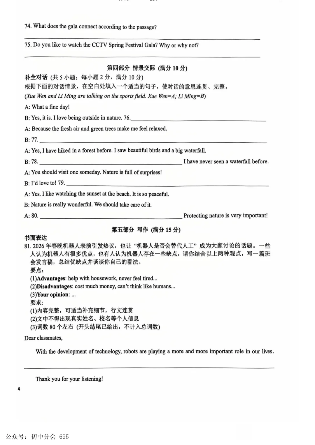 2025-2026学年九年级评估质量监测(三)试卷及答案(全科含听力)