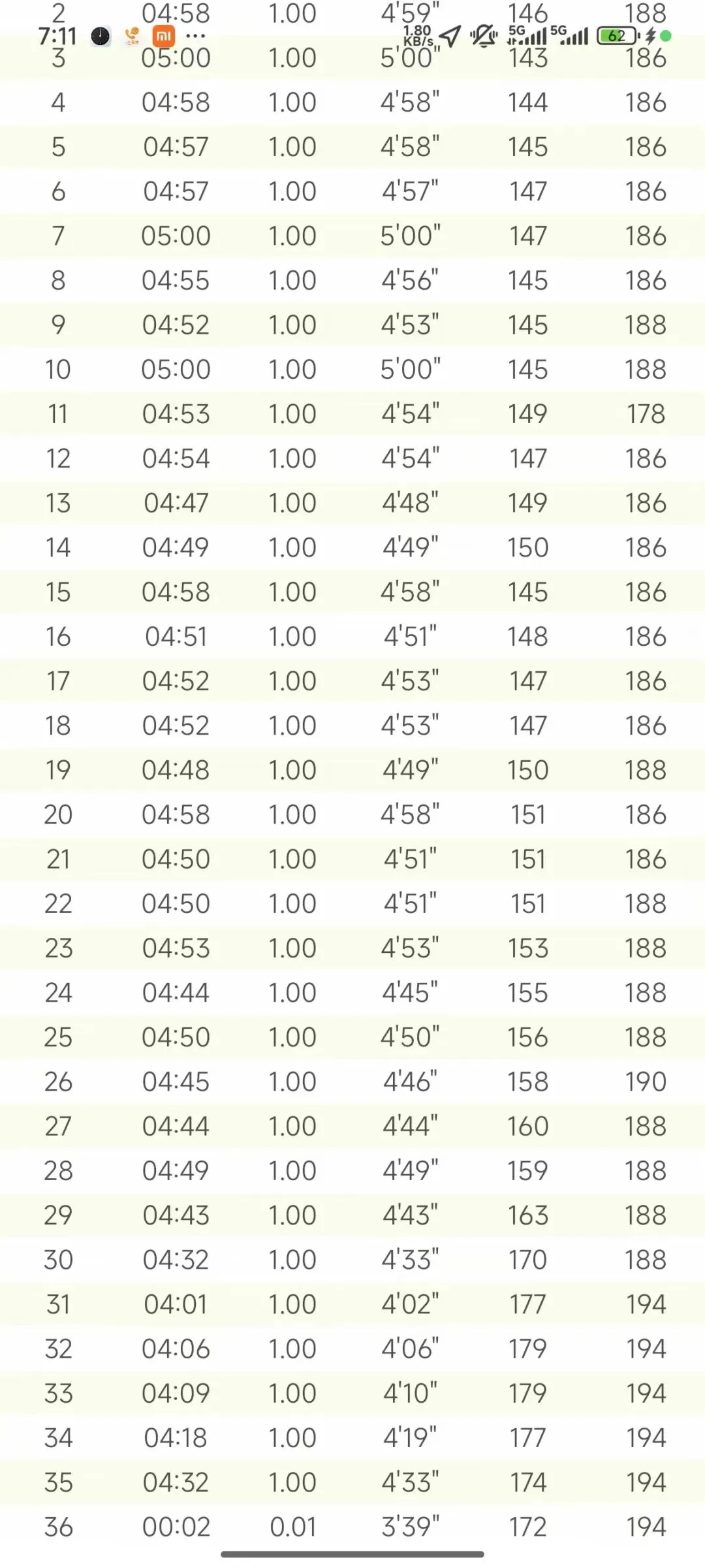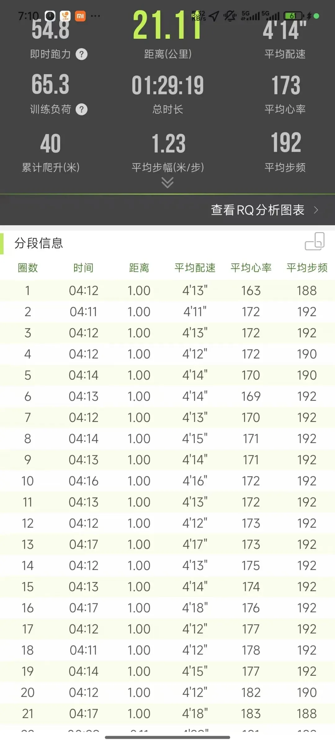 赛前三周:状态出奇的好,人也飘了。当时15公里跑进1小时,心率才168。紧接着当周的周末,我去拉了“30+5”的长距离,最后5公里还把配速提到了410。跑完其实左腿深层次隐隐作痛,甚至有抽筋的迹象。
