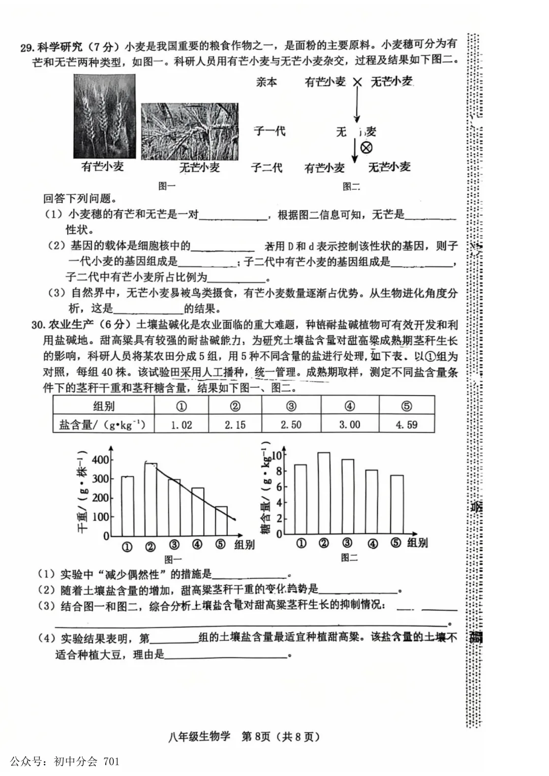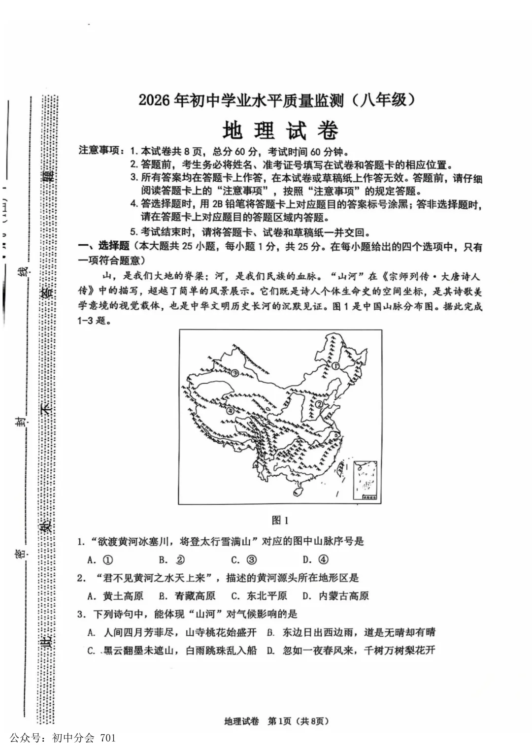 夸克「2025春季学期初中月考期中期末试卷汇总」