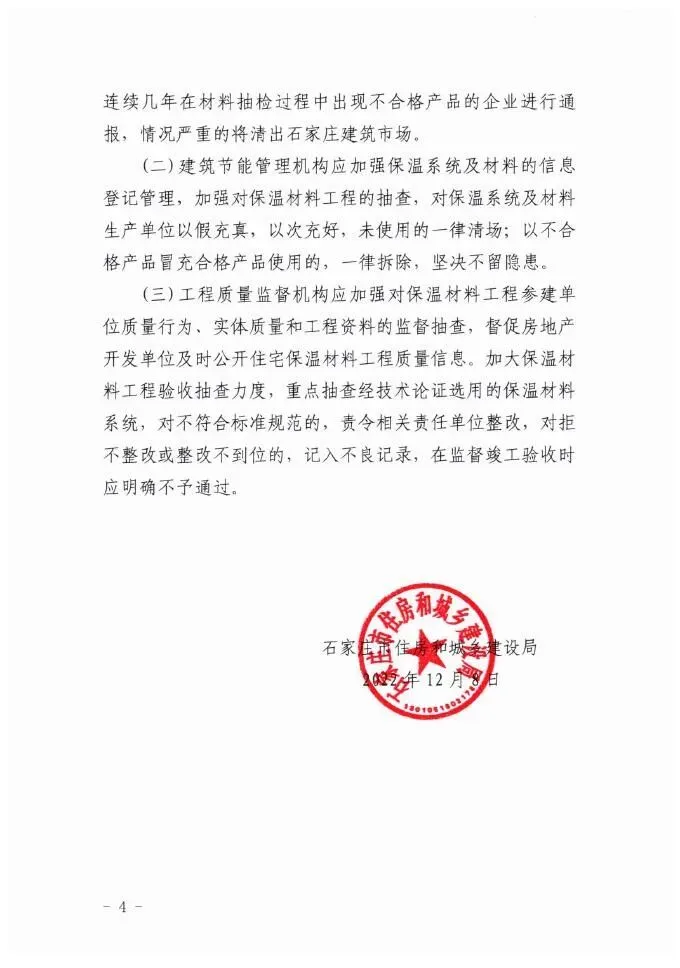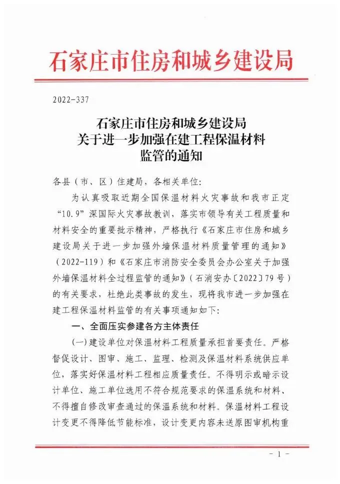 >石家庄发布关于进一步加强在建工程保温材料监管的通知