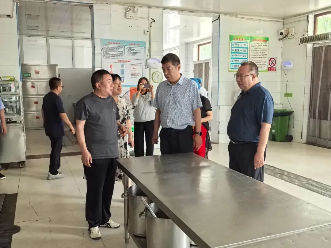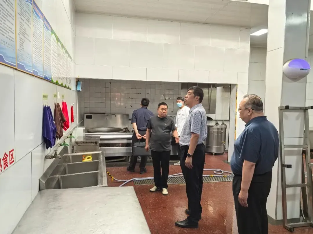 王力刚一行在各中考考生就餐食宿点,深入厨房配菜间、操作间,仔细查看厨房卫生、食材质量、食品留样、就餐安排管理等情况,对食宿点的食品安全进行全面细致检查。