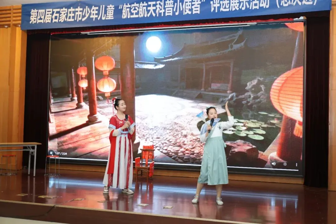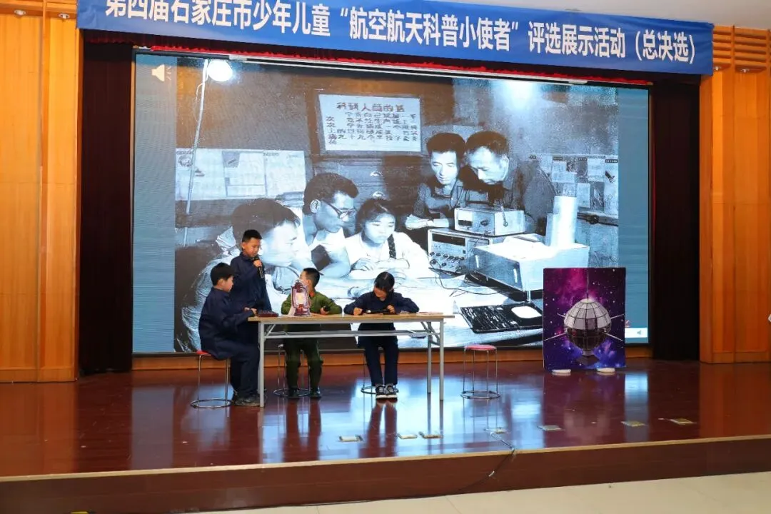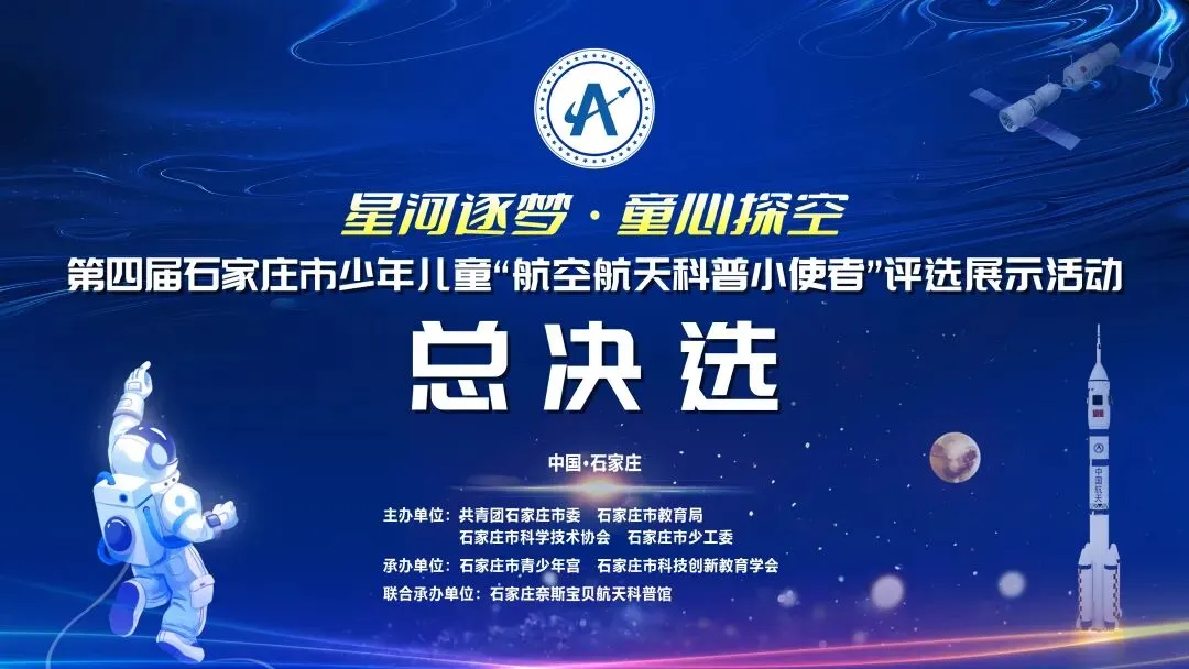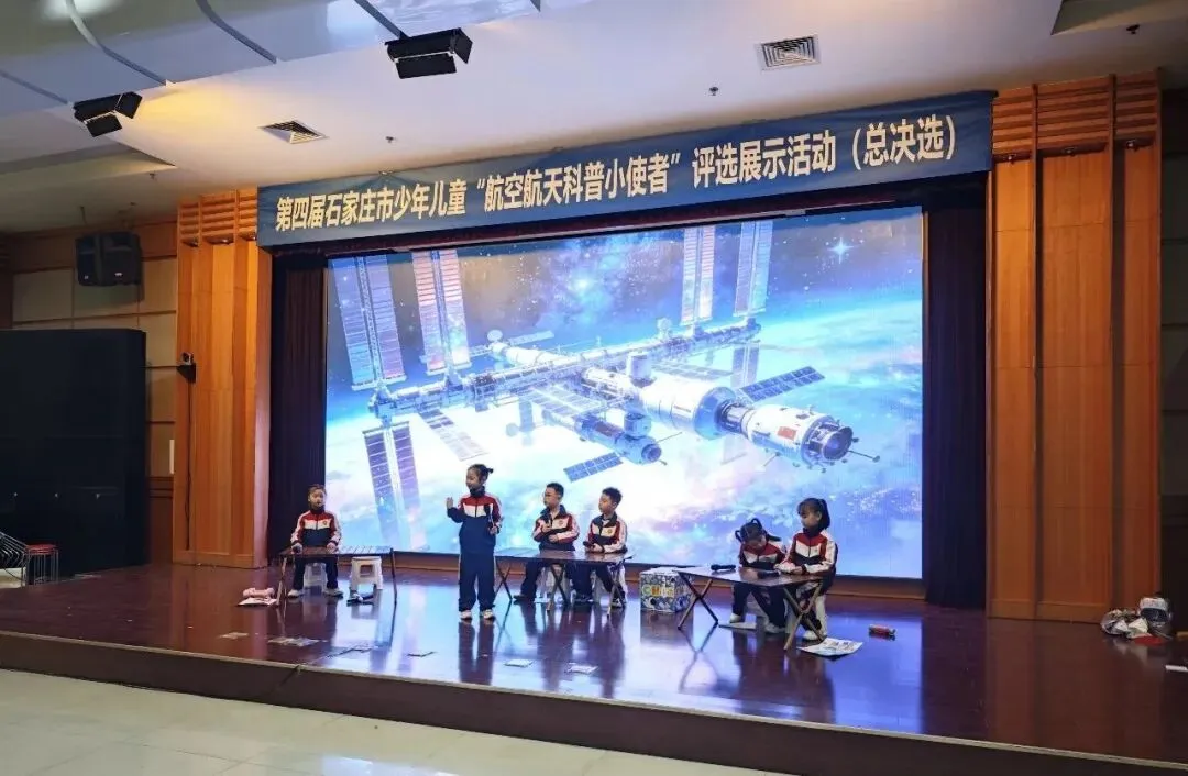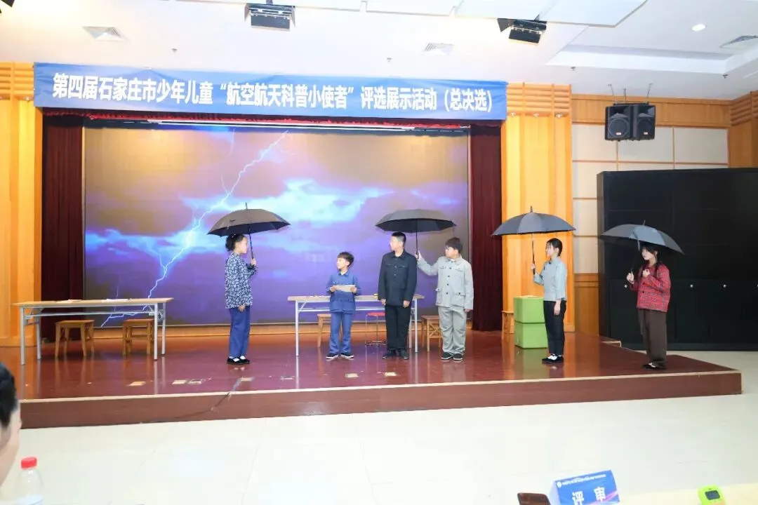 接下来,在热烈的掌声中,与会嘉宾共同上台,按下启动按钮,宣告第四届石家庄市“航空航天科普小使者”评选展示活动总决选正式启动。
