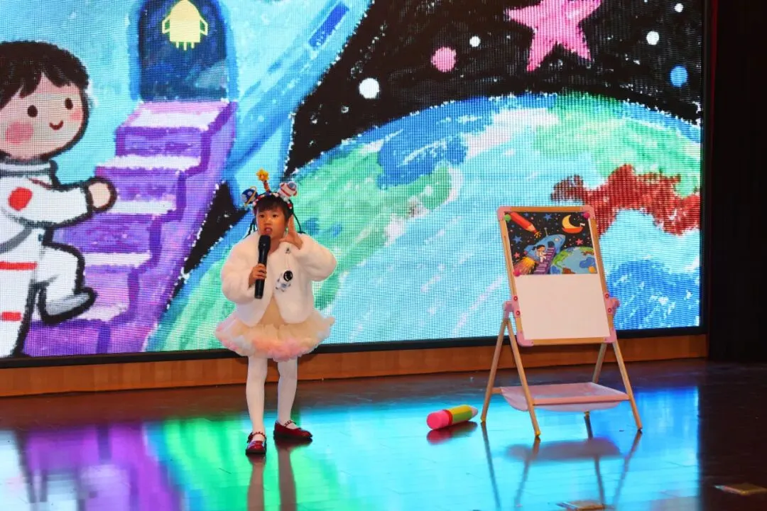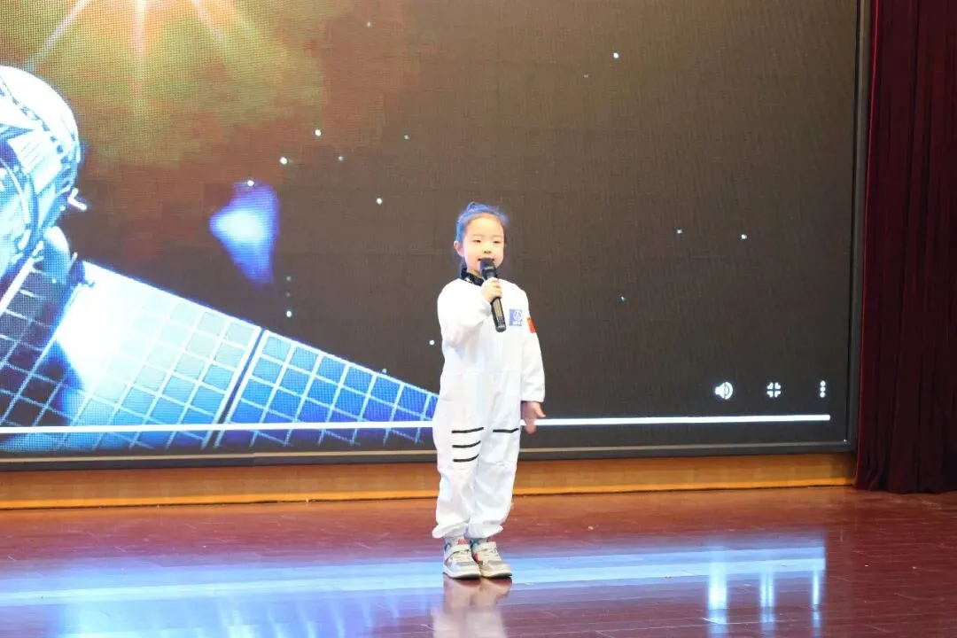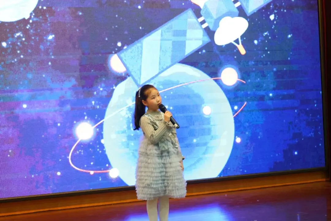 “我有一个航天梦,梦想着飞越浩瀚宇宙,遨游太空。”伴随着深沉而炽热的情感,清越饱满的声音响彻会场。7名前三届“航空航天科普小使者”以声情并茂的朗诵,正式拉开了活动的序幕。