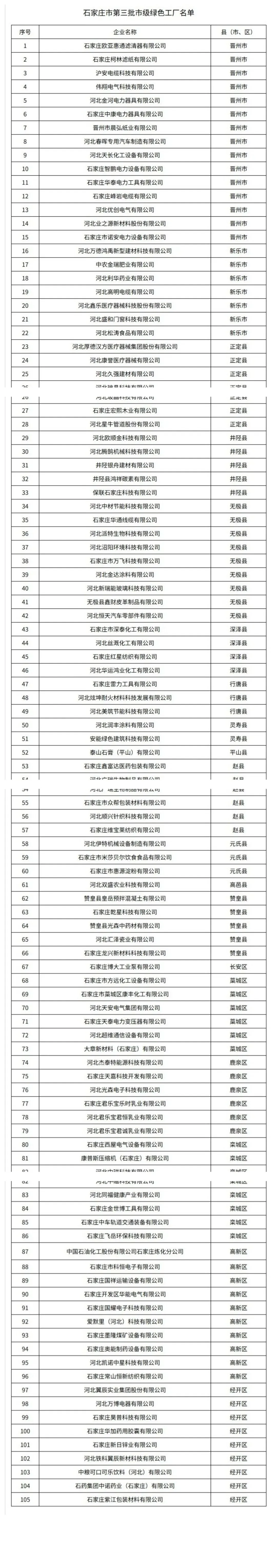 【石家庄】石家庄市工业和信息化局关于公布第三批市级绿色工厂名单的通知f