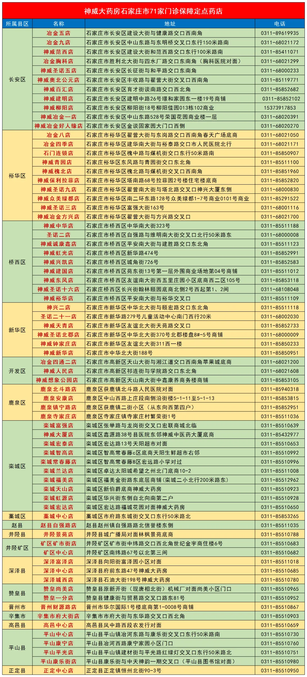 当前位置:首页>石家庄>神威大药房石家庄市新增14家门诊保障定点药店,现有统筹门店71家!