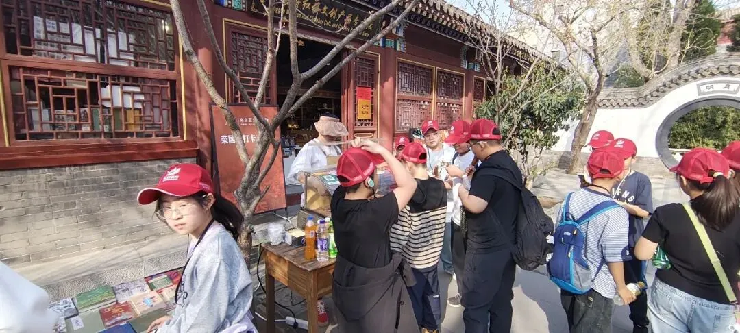 在游览的图中,路遇了一队前来参观的小朋友旅行团,他们在《红楼梦诗词绘画刻石展》的门口小吃摊和旁边纪念品店铺里跑跳嬉闹,流连忘返,看来比起知识,还是美食更加的吸引人