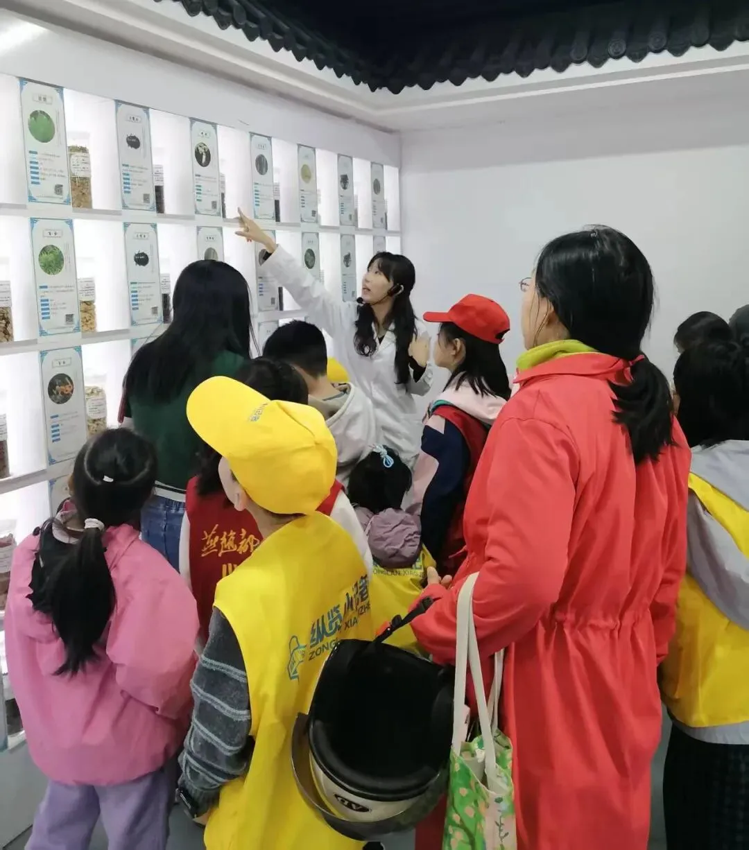 走进中药材展示厅,一股淡淡的药香扑面而来。玻璃柜里陈列着人参、当归、黑枸杞等各种中药材,标签上写着功效和鉴别方法。“原来中药材也有真假之分,以后买中药要去正规药店。”小记者们参观后纷纷说道。