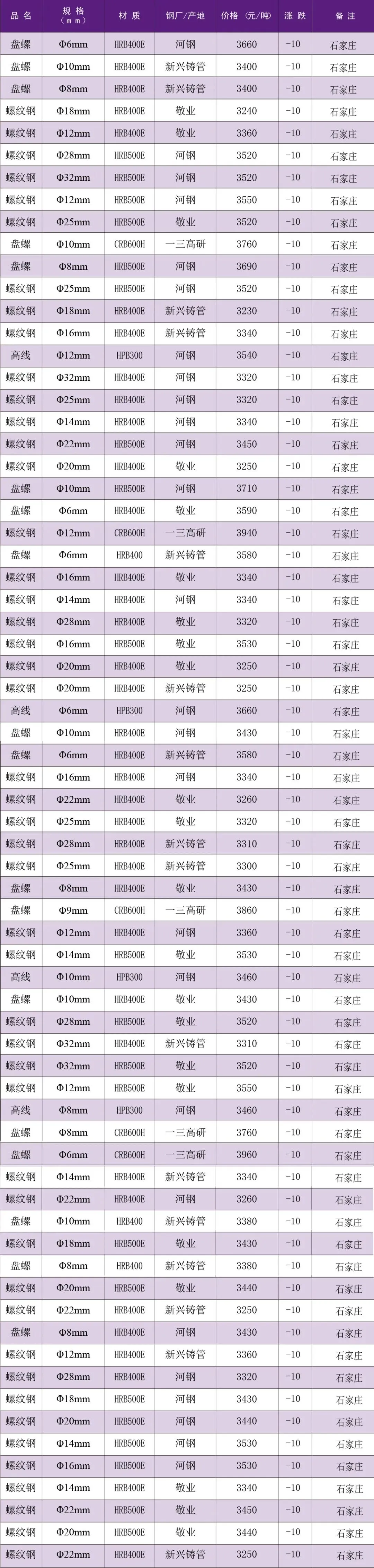 【每日一价】3月30日石家庄市场建筑钢材价格行情
