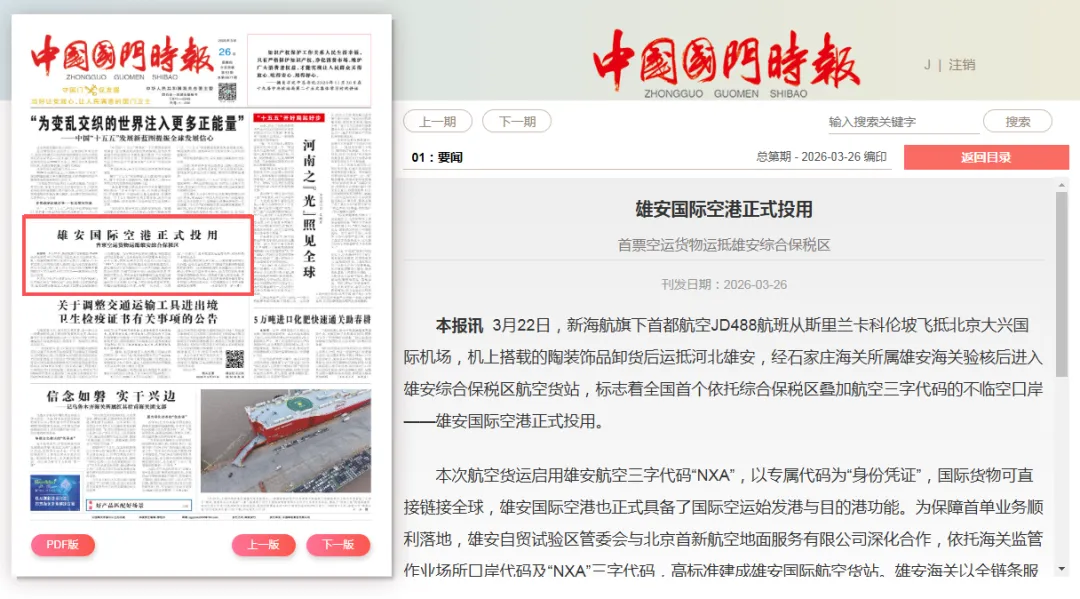 雄安国际空港正式投用 首票空运货物运抵雄安综合保税区