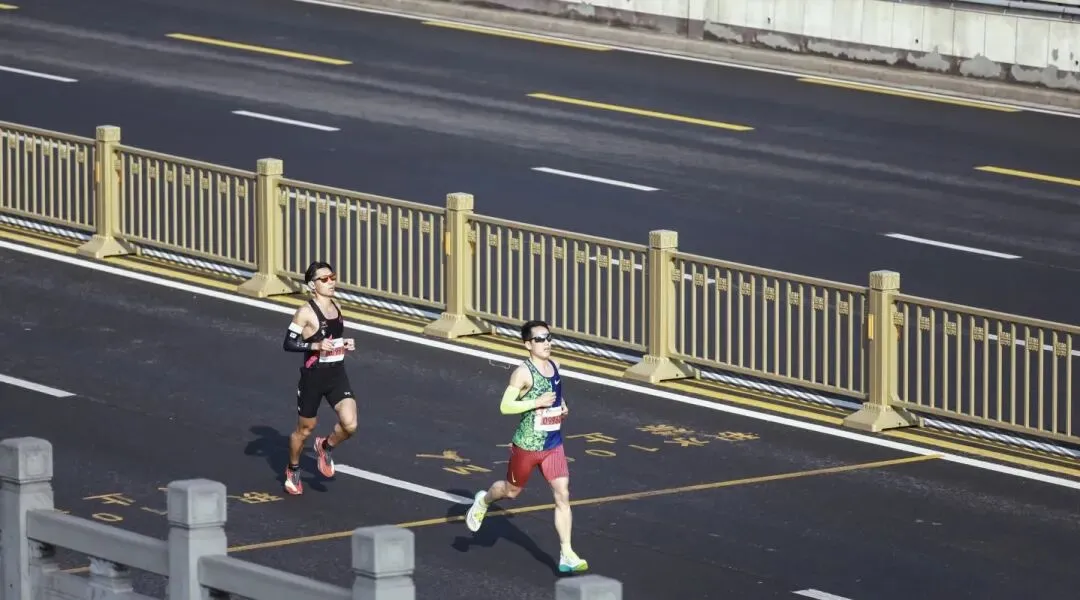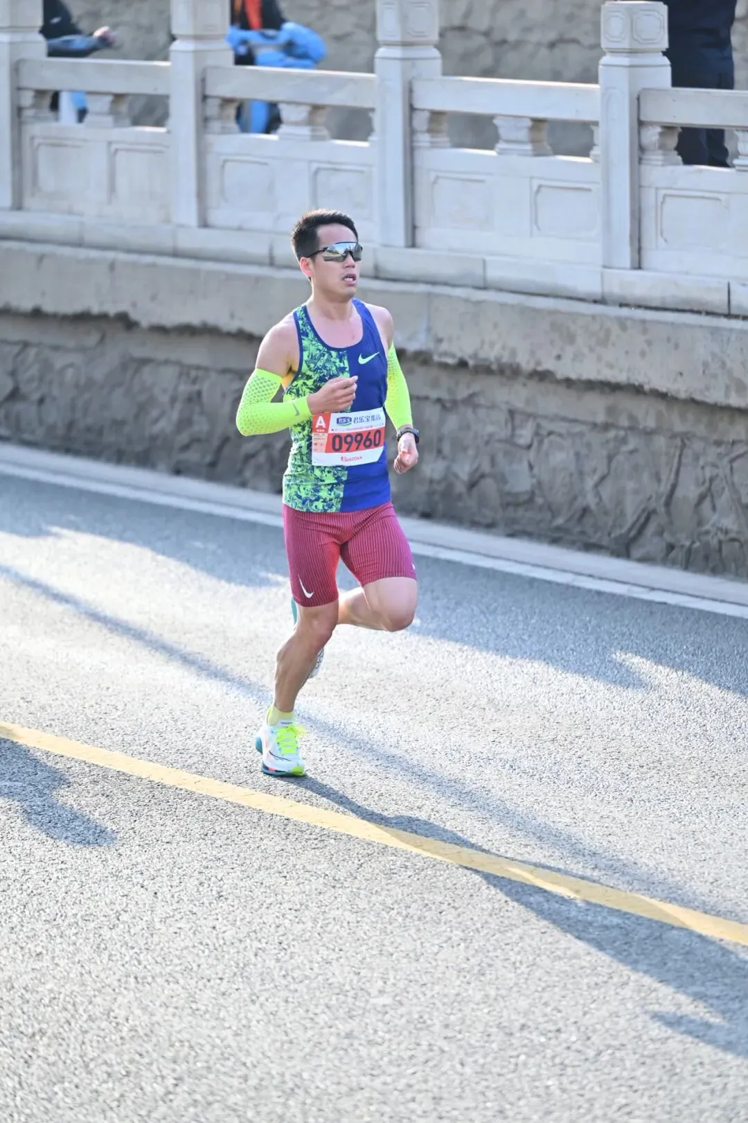 在此之后,在宽阔笔直的赛道上除了能零星的追上几位掉速的选手,再无任何波澜,即便在30公里就能感觉到状态在持续提升着,我还是小心翼翼的保持稳定的速度,“不要着急”是我对自己重复最多的内心独白,直到赛程来到35公里,还是按照惯例任凭手表计时的震动声嗡动着我的皮肤都不会再看它一眼,因为这只会耽误我的时间,