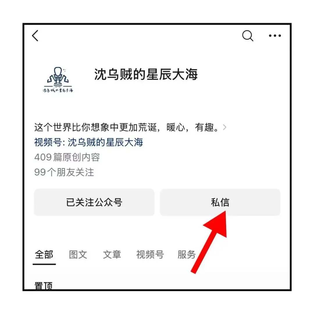 第1步,关注公众号,点击【私信】
