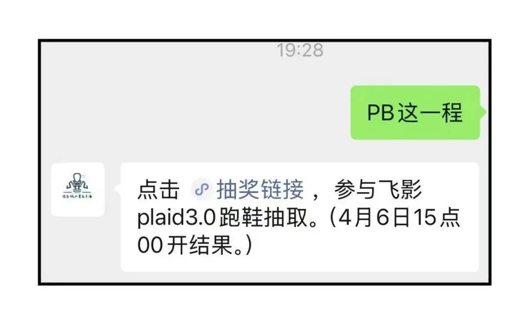 将抽取 1 位跑者朋友,送出中乔飞影plaid3.0一双(中奖伙伴记得填性别和尺码)。具体参与方式很简单,在我的公众号后台回复关键词——PB这一程,即可收到参与链接,参与抽奖。