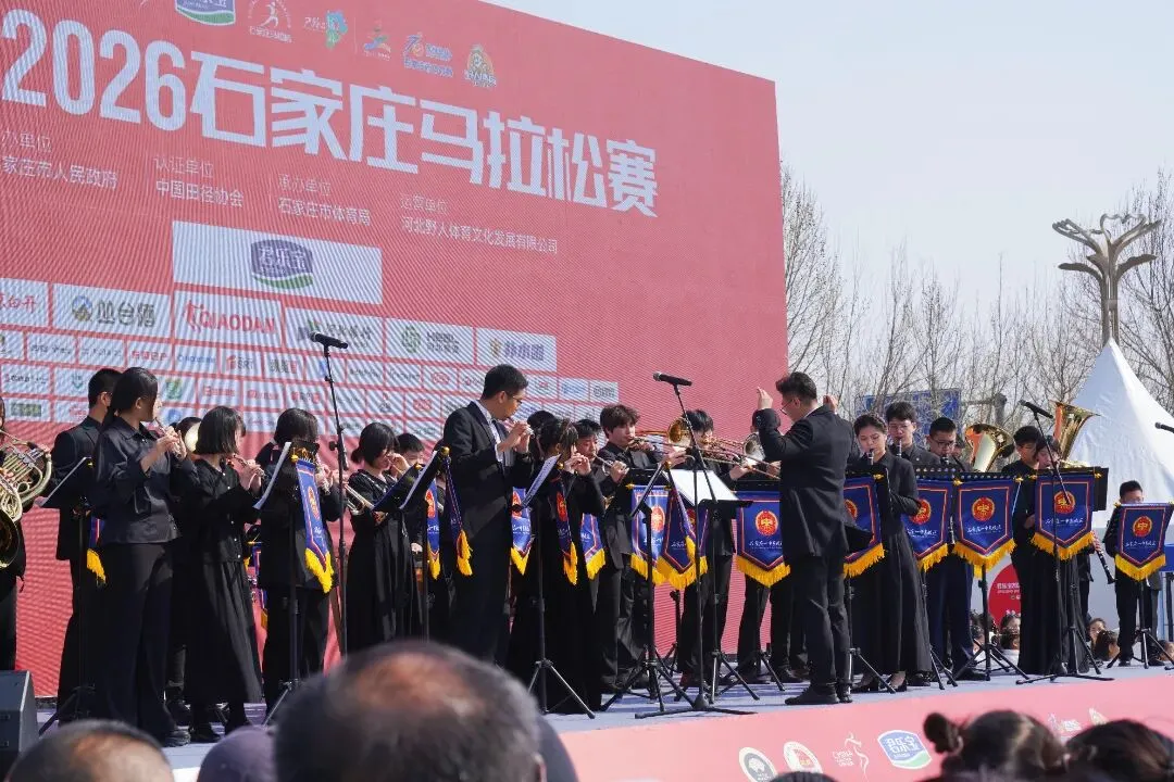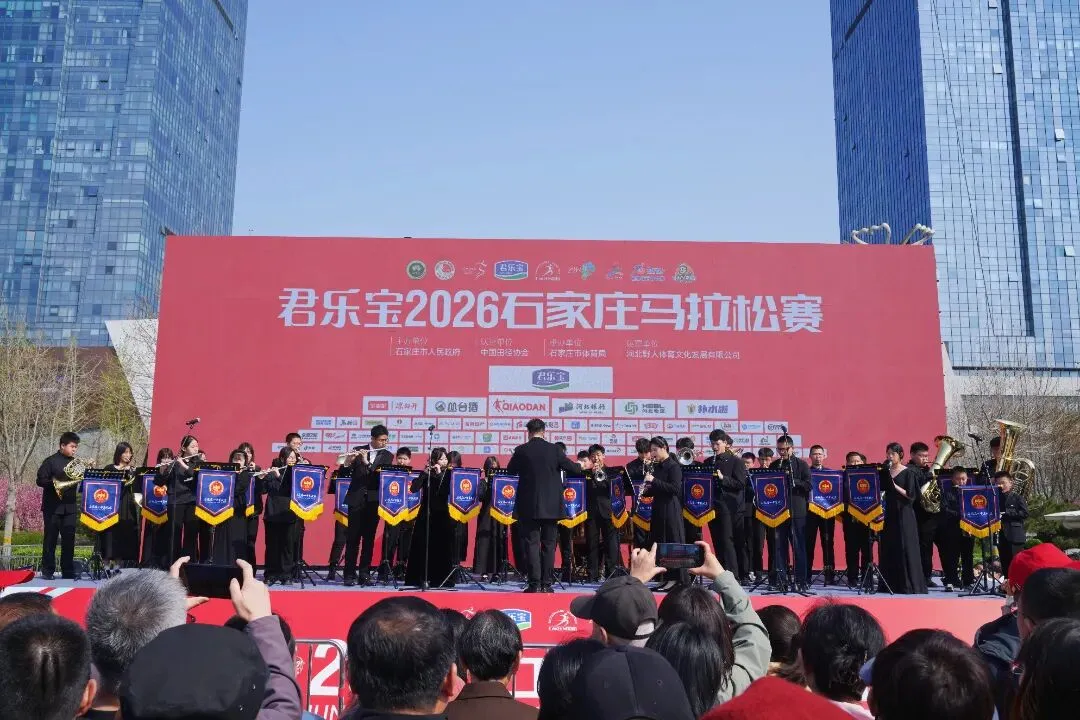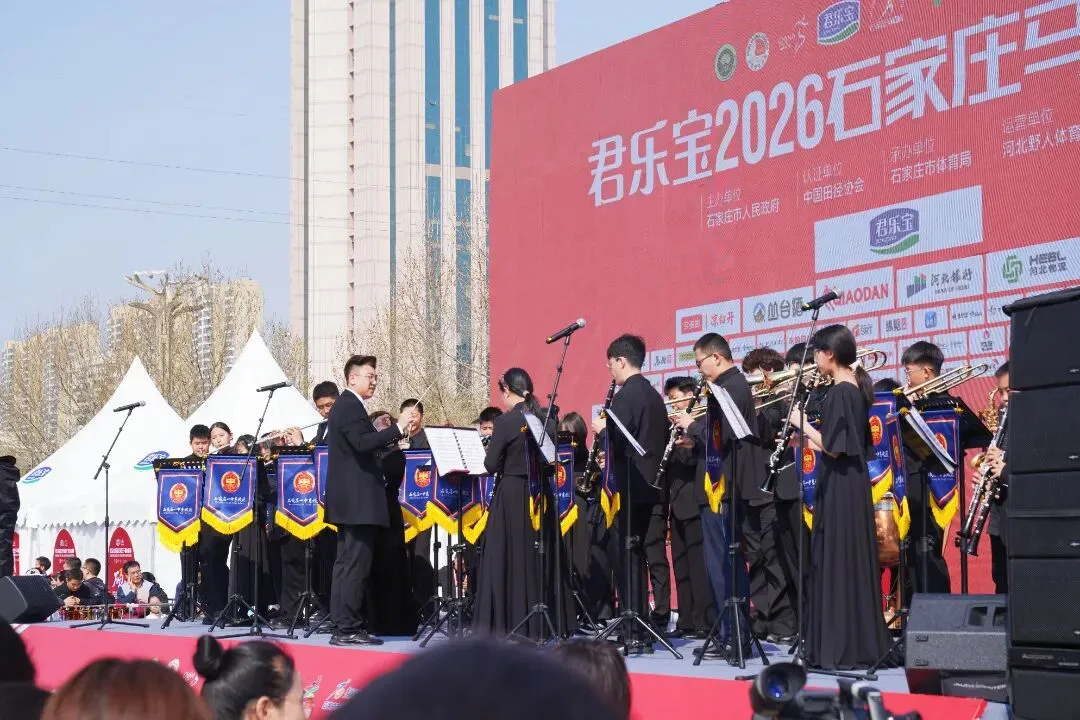 春风拂冀,乐赴盛会。3月29日,君乐宝2026石家庄马拉松赛在解放广场鸣枪开赛。石家庄一中东校区管乐团在指导教师王野的带领下,受邀参加终点站火炬广场展演。以乐为媒为赛事助威,以音传情展学子风采。