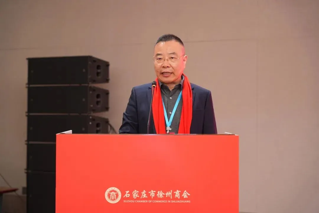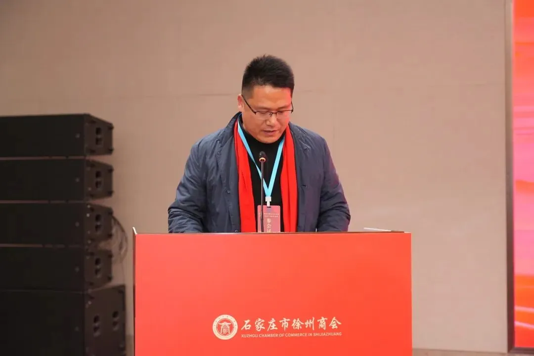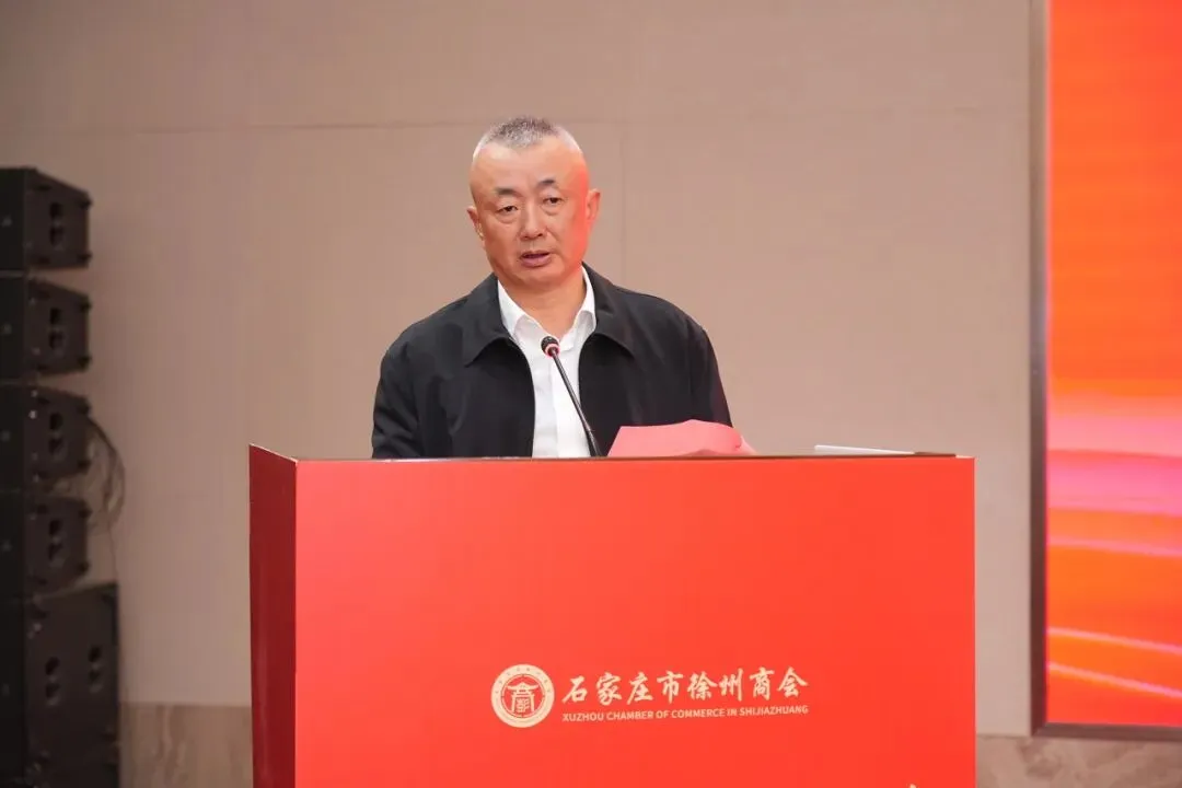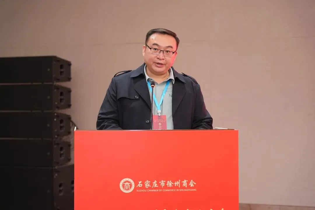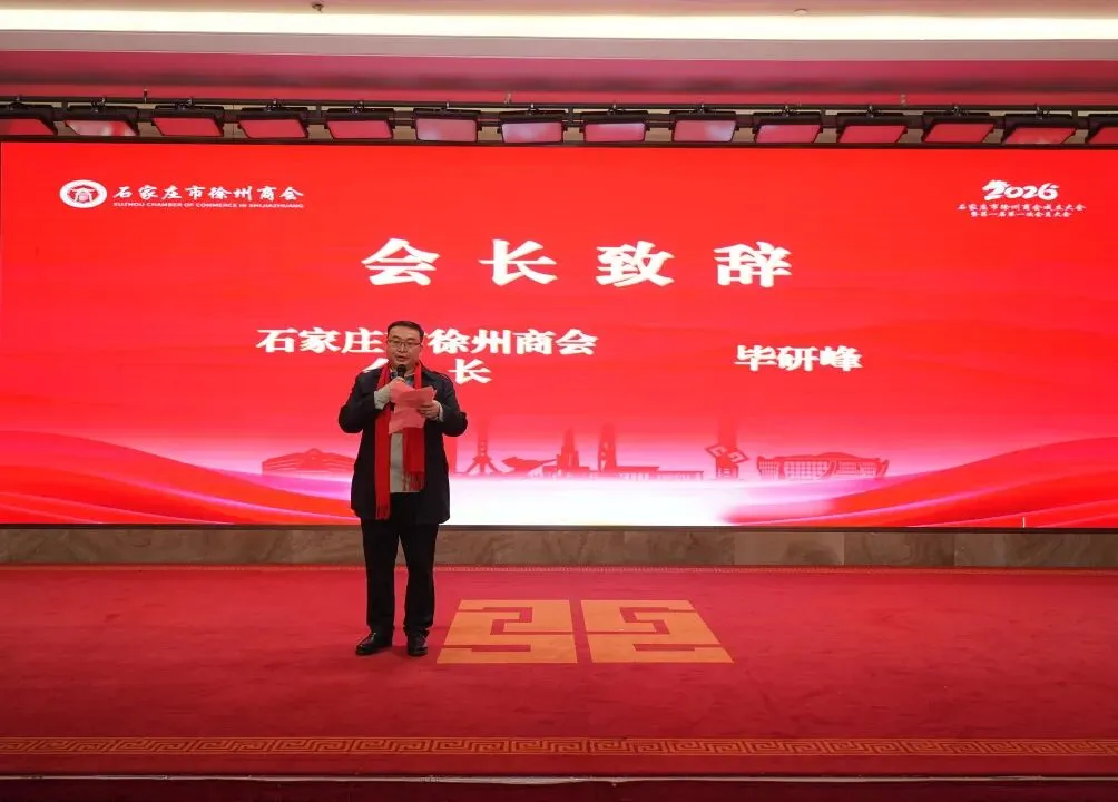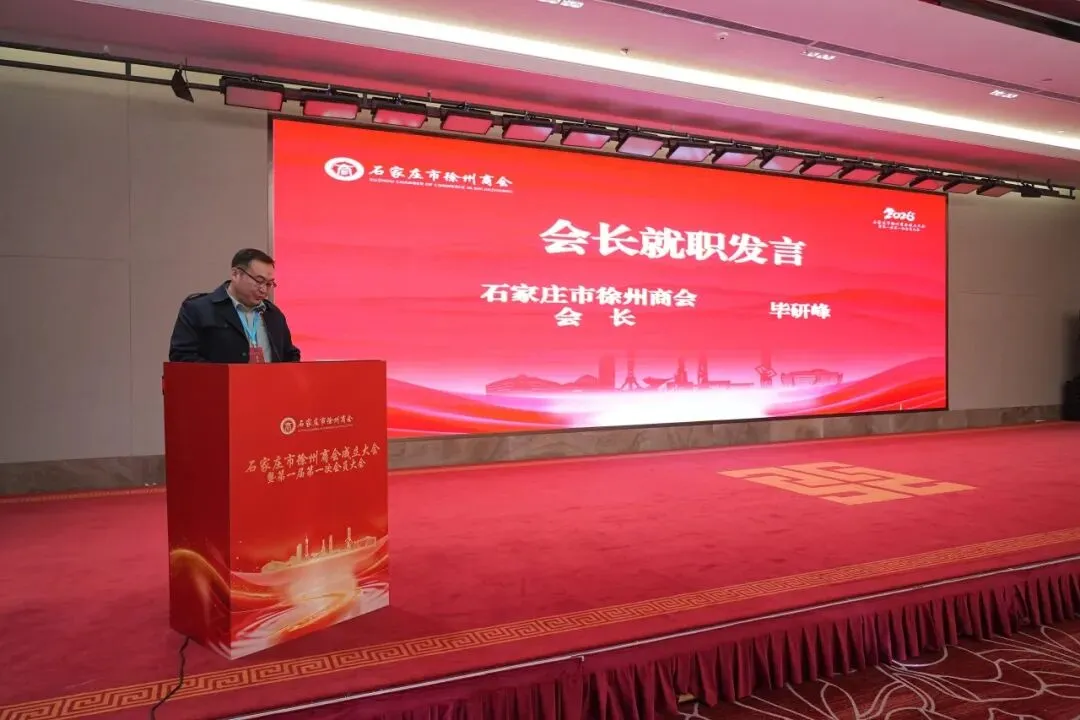 新当选的石家庄市徐州商会会长毕研峰发表就职发言。他首先向各级领导、各界嘉宾及全体会员的信任与支持表示感谢。他表示,商会将秉持“联络乡情、服务会员、凝聚力量、共谋发展”的宗旨,以乡情为纽带建好温暖之家,让每一位在石徐州人都能感受到“娘家人”的关怀与支持;以服务为核心当好坚强后盾,让商会成为会员企业可信赖、可依靠的坚实支撑;以合作为抓手,搭建发展平台,助力会员企业在石家庄做强做大、也为家乡发展贡献力量;以责任为担当树立良好形象,打造一支务实高效、团结奋进的理事会队伍,推动商会健康有序发展。