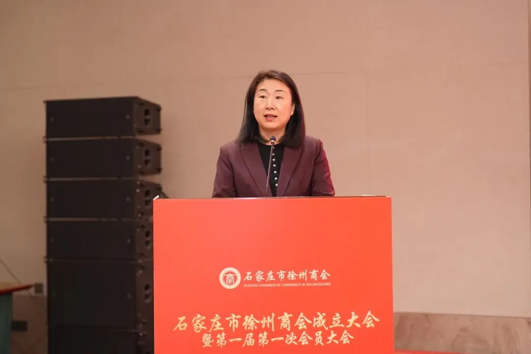 她代表徐州市工商联、徐州市总商会向商会的成立表示祝贺,并希望商会未来能立足三个定位:一是做乡情凝聚的“连心桥”,让在石徐州企业家感受“家”的温暖,把商会建设成为凝聚乡情的温暖之家、互帮互助的和谐之家、共谋发展的实干之家。二是做产业合作的“助推器”,依托徐州的制造业优势与石家庄的区位优势,实现两地企业资源互补、共赢发展。三是做形象展示的“金名片”,引导会员企业诚信经营、守法合规,积极在石家庄树立徐州企业家的良好形象,为家乡增光添彩。