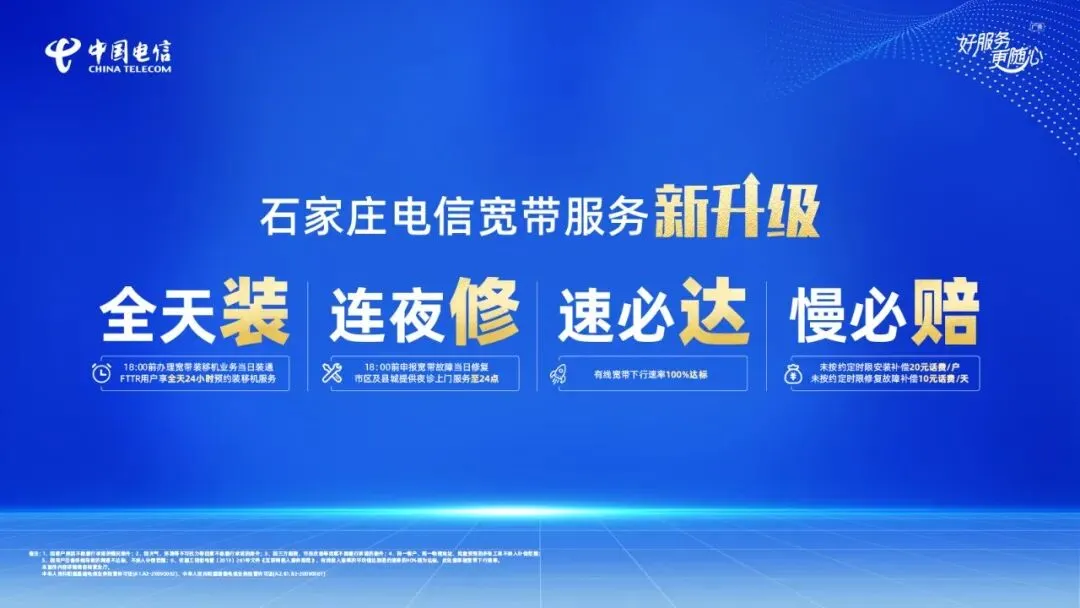 从当日装网的便利,到深夜响应的守护;从速率的保证,到贴心服务的保障,石家庄电信的宽带服务升级,从未停止对用户体验的优化。作为深耕本地的通信央企,石家庄电信始终以用户为中心,不断打磨服务细节。未来,石家庄电信将继续以更优质的网络、更高效的服务,守护每一位用户的数字生活,让通信服务更有温度、更显贴心!