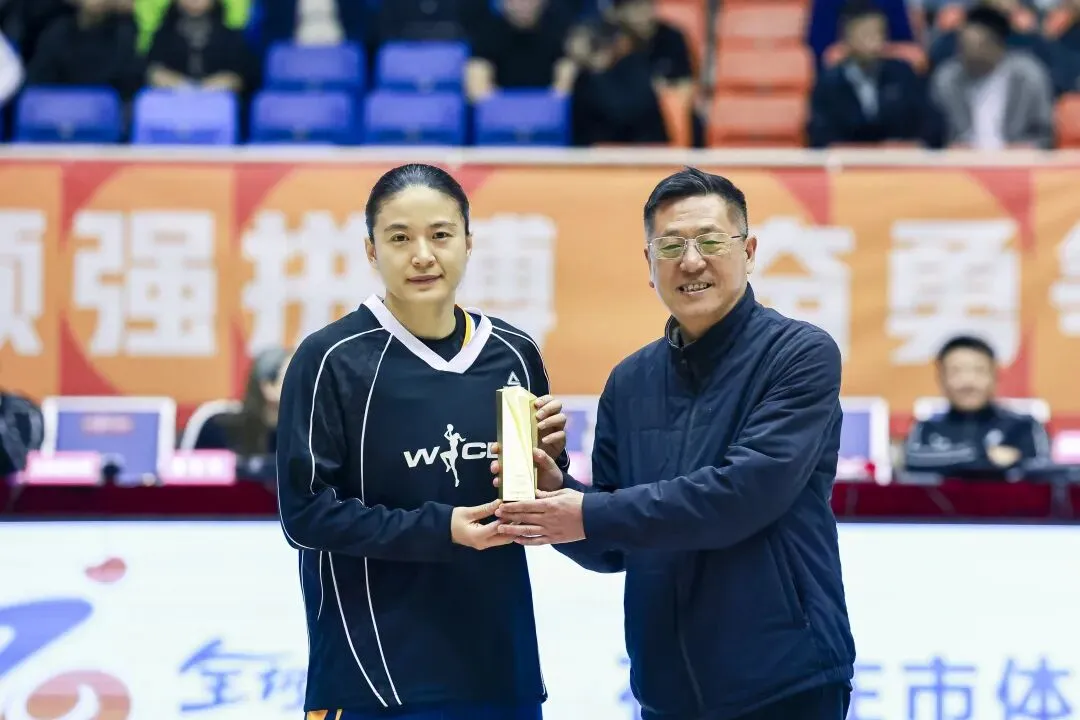 颁奖现场,石家庄市体育局党组书记、局长任维维为王丽丽颁发奖杯,肯定其为石家庄篮球事业作出的贡献,同时寄语石家庄英励女篮全体队员,以王丽丽为榜样,在后续赛事中再接再厉、再创佳绩。