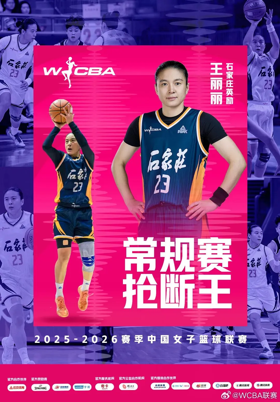 本赛季常规赛,王丽丽以场均 3.3 次抢断的高效数据,领跑全联盟抢断榜,成为石家庄英励女篮防守端的绝对核心。她以敏锐的预判、迅捷的脚步和强硬的对抗,一次次完成关键抢断、瓦解对手进攻,用铁血防守撑起球队防线,成为石家庄英励攻防转换的重要发起点。