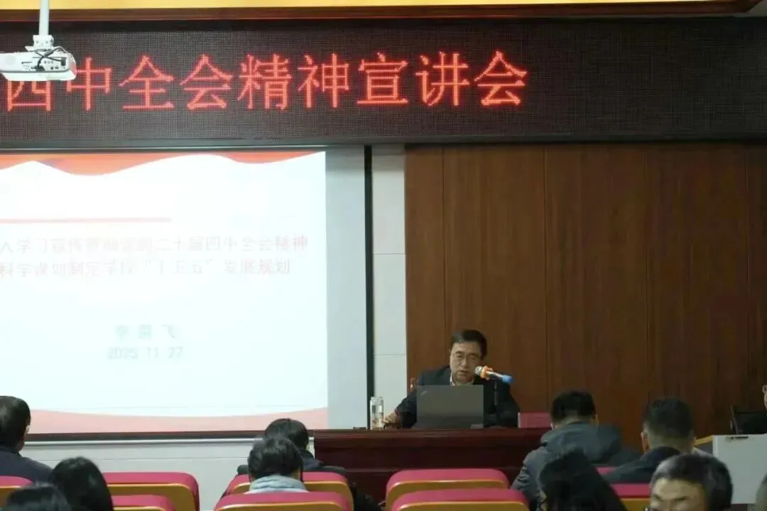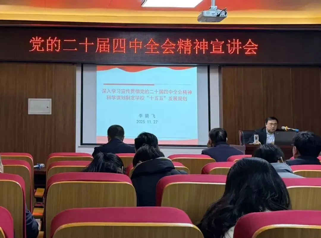 整场宣讲主题鲜明、内涵丰富,兼具理论高度与实践深度,为全校学习领会全会精神、制定 “十五五” 规划提供了有力指导。参会人员表示将立足岗位担当作为,推动全会精神落地见效。学校党委已制定《关于全面深入开展学习贯彻党的二十届四中全会精神的实施方案》,后续将通过党委理论学习中心组研讨、宣讲团宣讲、党支部 “三会一课” 等形式,持续推进全会精神进校园、入人心。