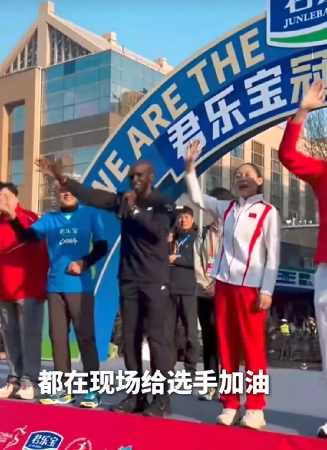 现场星光熠熠、氛围拉满:马拉松传奇基普乔格、央视主持人朱迅,携手奥运冠军巩立姣、常园亲临现场为选手加油,瞬间引爆全网热度;沿途助唱队轮番献唱,数十万市民自发走上街头举牌呐喊、锣鼓助威,整条赛道变成全城狂欢的海洋。