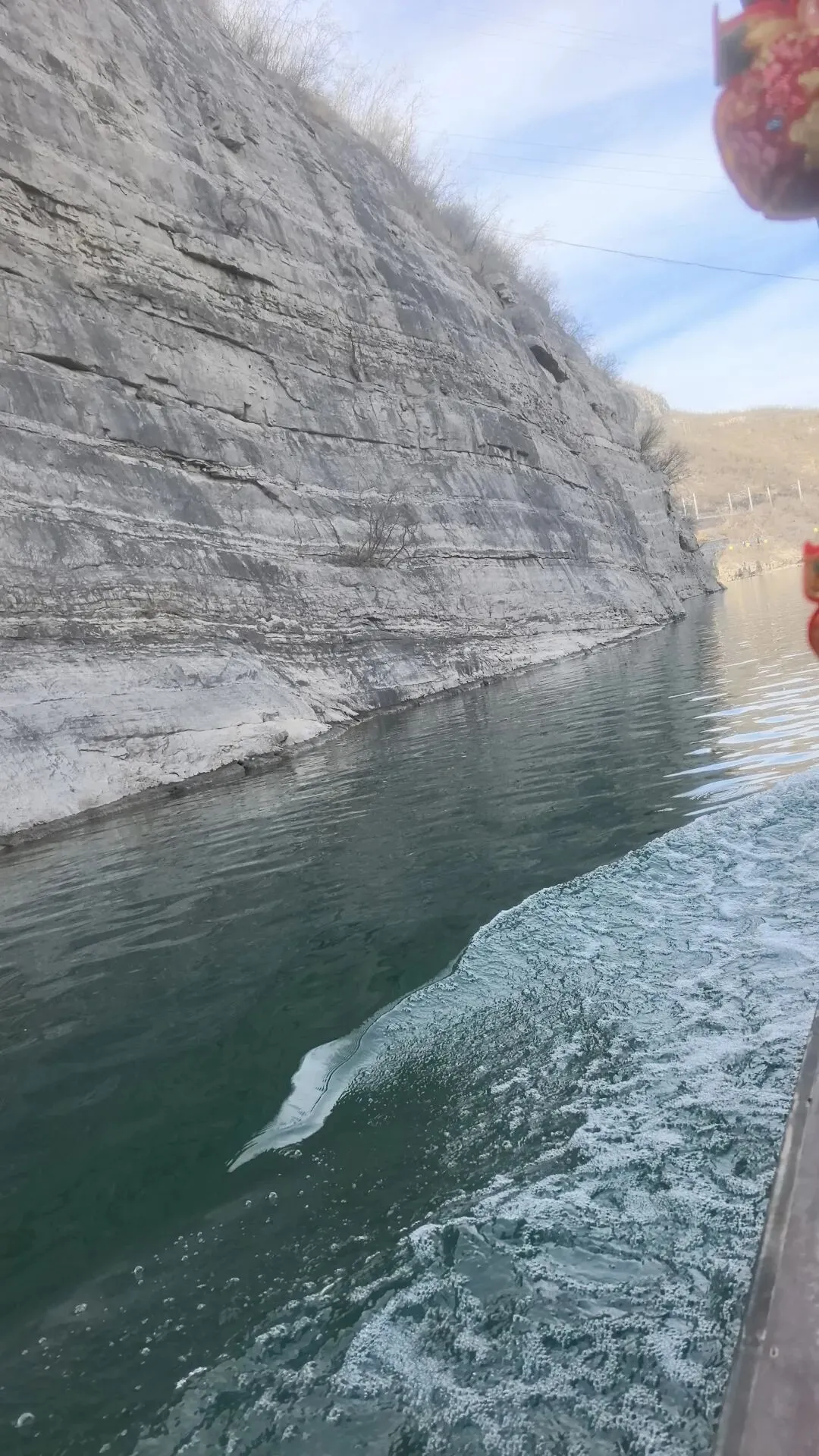 葫芦形湖泊,两岸悬崖高耸,山清水秀,可乘船游湖 。