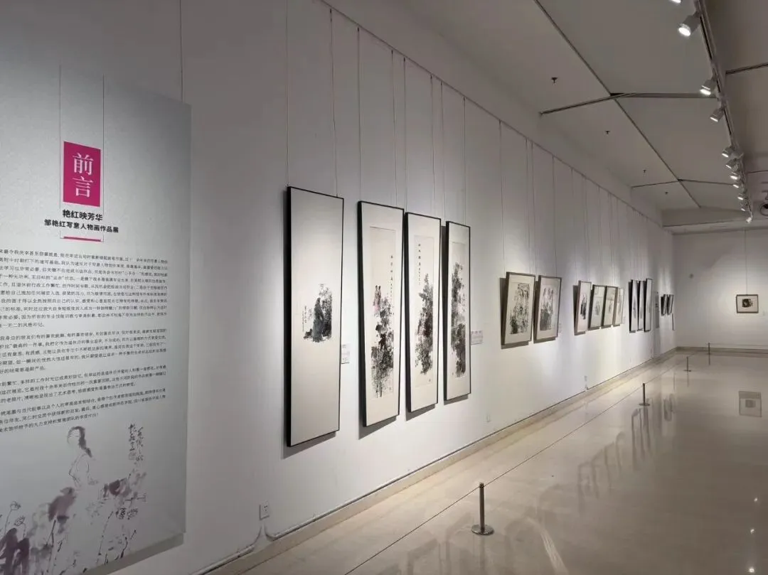 “艳红映芳华——邹艳红写意人物画作品展” 同期亮相。邹艳红,原成都师范学院美术与设计学院院长,其作品以女性特有的细腻视角和明丽雅致的色调著称。此次展出的作品多为近年新作,画家在无功利、无目标的“业余”状态下创作,以潇洒灵动的笔墨描绘现代女性、生活小品等题材。画面中,线条流转自如,墨色酣畅淋漓,人物形象或端庄娴雅、或天真烂漫,在似与不似之间传递出东方写意精神的独特韵味,展现了写意人物画在当代语境下的鲜活生命力。