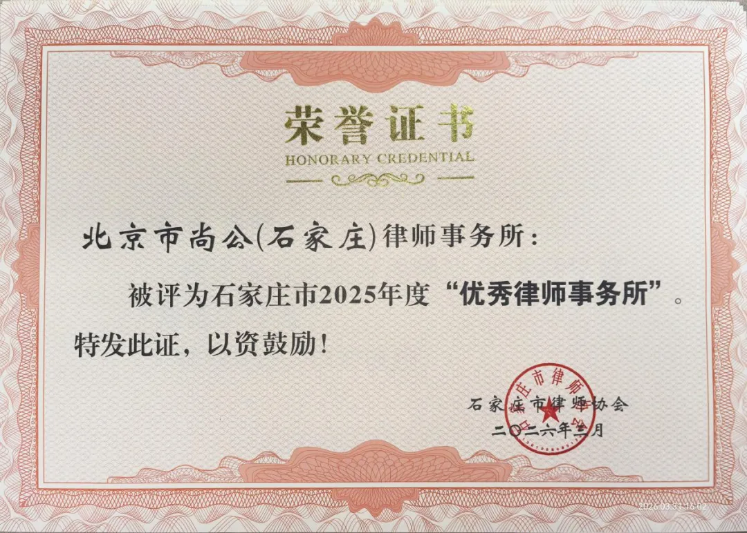 载誉前行,共赴新征程。荣誉是肯定,更是前行的动力。尚公石家庄律师事务所将以此次表彰为新起点,继续坚守初心、深耕专业、践行责任。未来,律所将带领全体律师,以更精湛的专业能力、更热忱的服务态度、更坚定的公益担当,为国家法治建设、经济社会高质量发展贡献尚公力量,与全市律师同仁携手,共筑法治新篇。