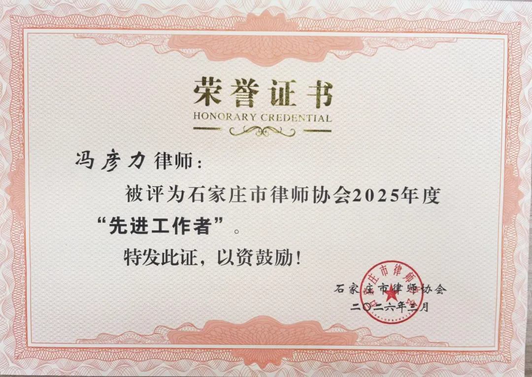 冯彦力律师:获评“律协先进工作者”,在行业建设与协同发展中贡献突出。