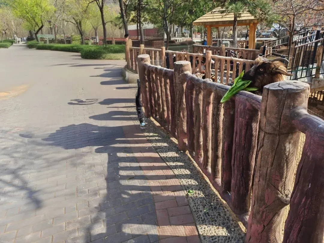 小羊还会趴到栏杆上吃菜。