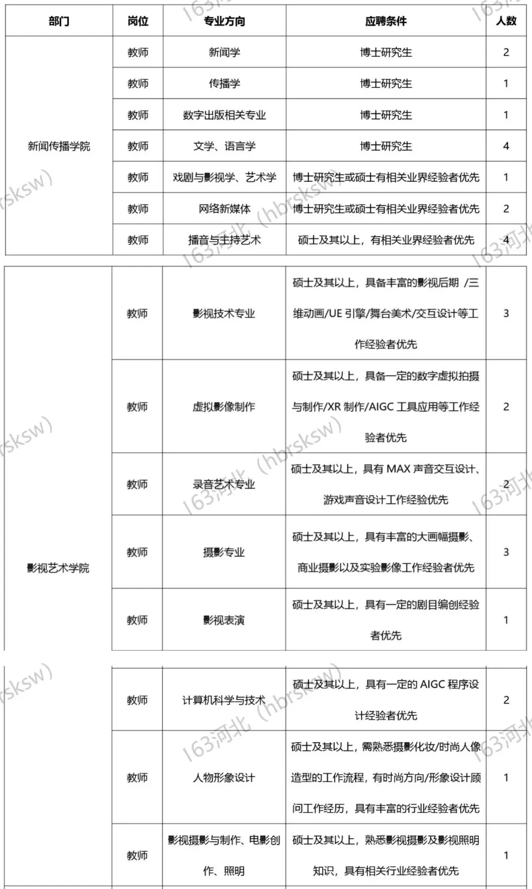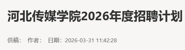 河北传媒学院2026年度招聘145人计划