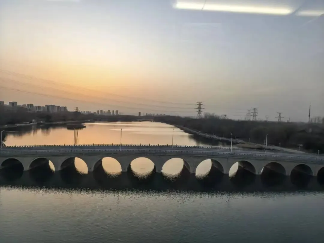 依旧从这里出去,骑上共享电动车直奔火车站,时候尚早可以骑慢点。路上看见一家“二姑包子”,我知道这是天津包子的一个著名品牌,拍下来给C君发过去。C君惊讶我知道“二姑包子”,我还是在橙飞一下还是在团团记这些food influencer的视频里看到的这个品牌。此时骑车我正憋着尿,到了火车站在站外面的下沉广场里方便了一下,就刷身份证进站。进去之后由于火车到北京已经晚上七点多了,就打算在石家庄站吃个晚饭。时间尚早,进站那会才五点出头。吃完后发现离开车时间就差5分钟了,赶紧冲到检票口过关上车。列车驶过滹沱河,拍了张照、录了视频。